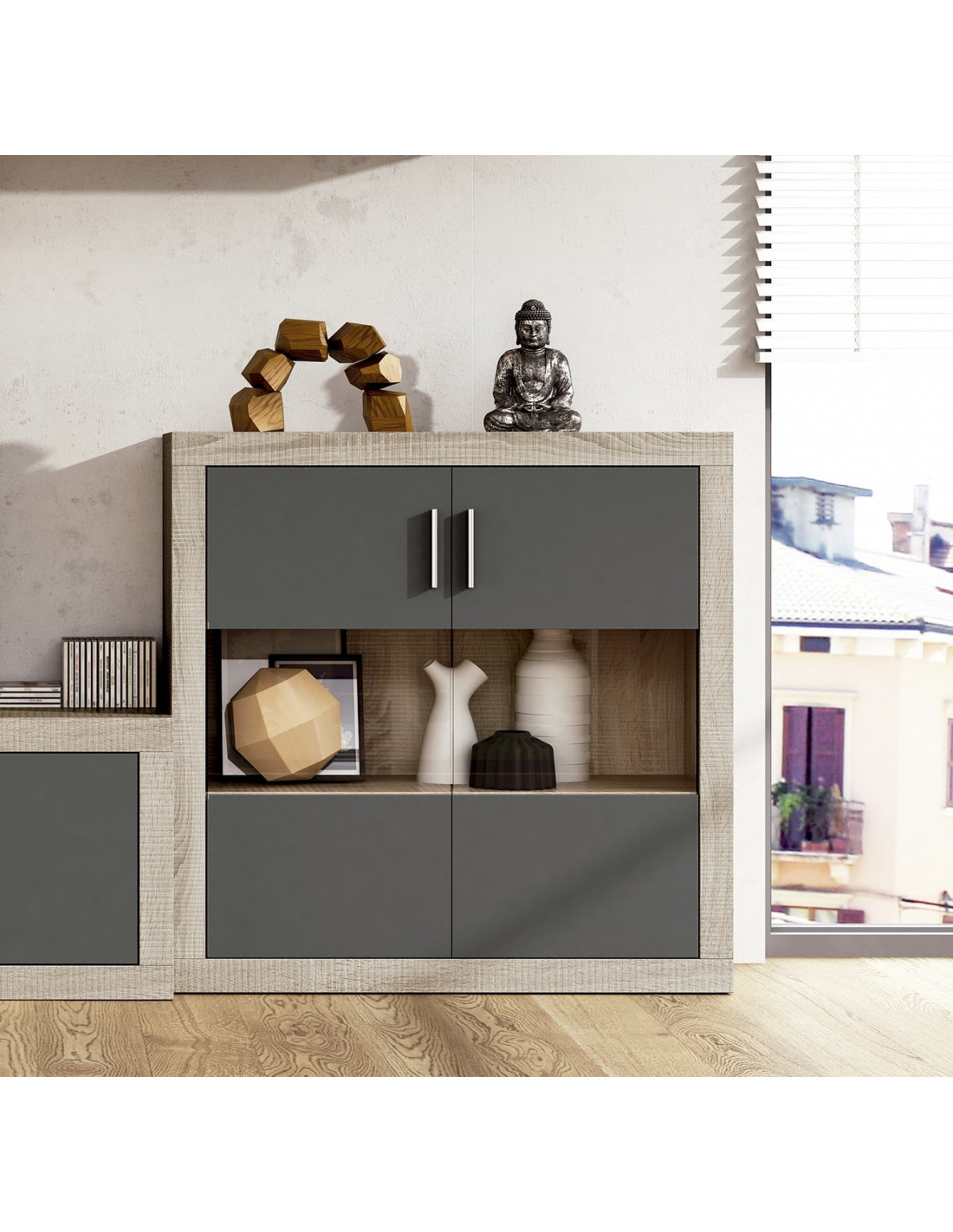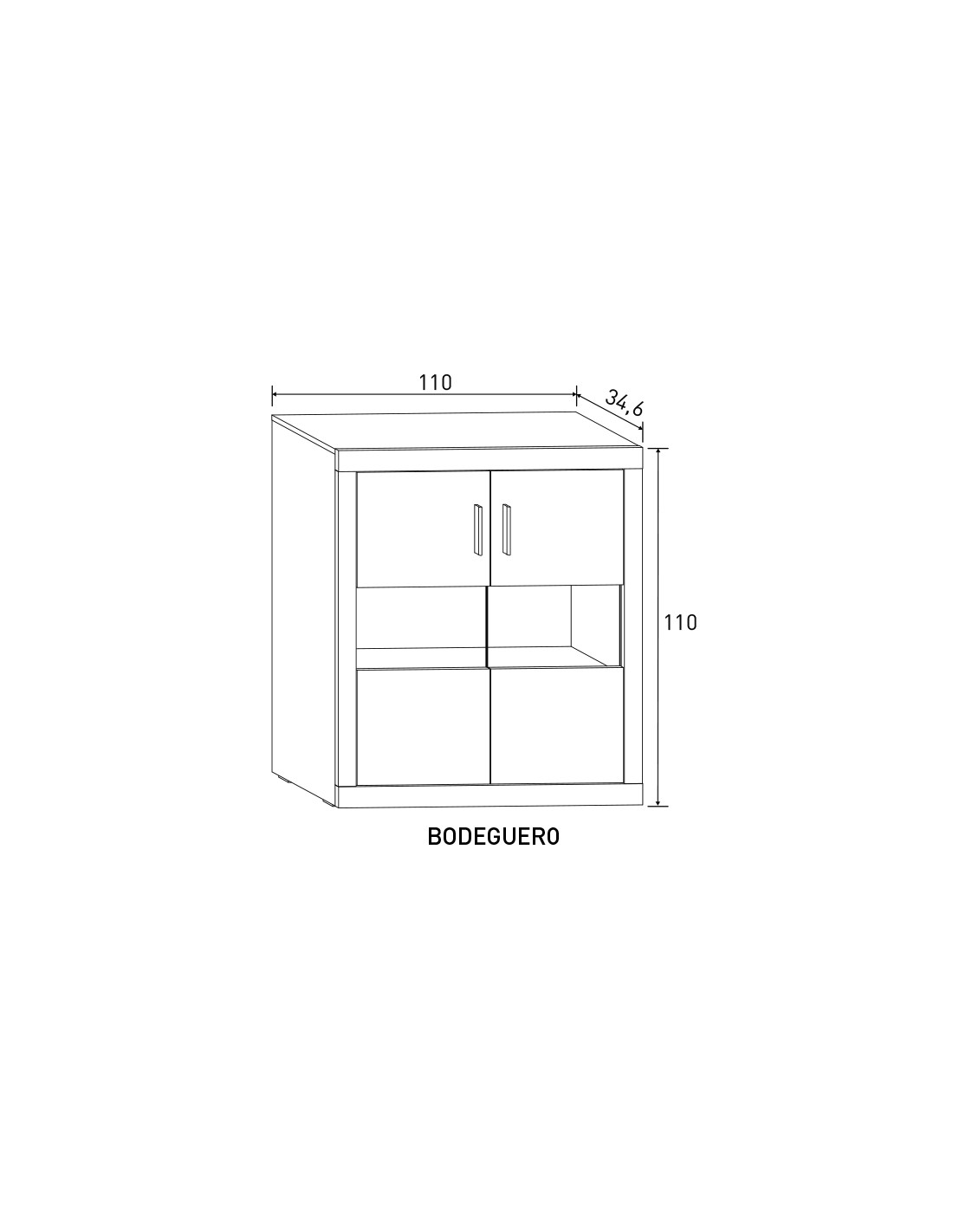 El bodeguero de dos puertas modelo Lara de 110cm está fabricado en melamina de alta calidad, y es un mueble perfecto para conseguir almacenaje en cualquier composición de salón. También se puede utilizar como entradita o aparador en un espacio recibidor. Se puede elegir en tres colores diferentes: cambria- blanco, cambria- grafito y puccini- textil, y los tiradores siempre serán rectangulares y plateados. Los elementos decorativos no incluidos. Se presenta en KIT para garantizar el transporte sin incidencias.