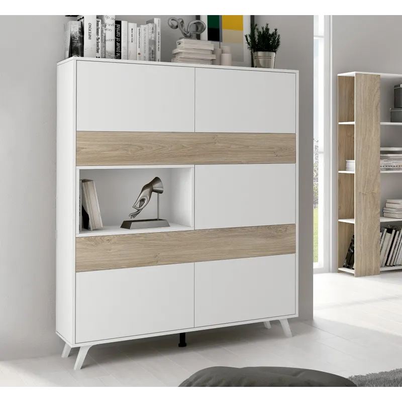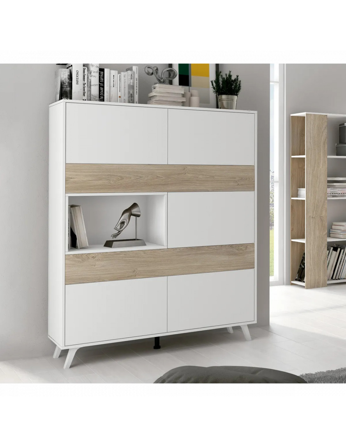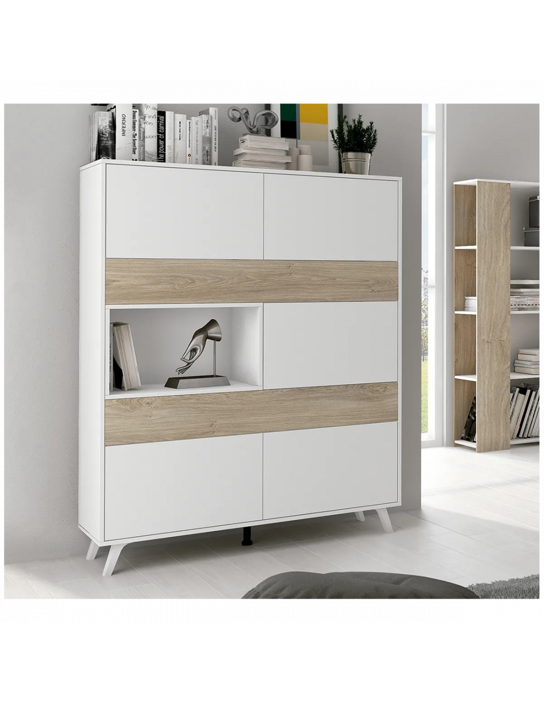 Bonita Estantería disponible en blanco-roble. De estilo nórdico que quedará genial allí donde lo pongas. Tiene una gran capacidad, podrás almacenar en él lo que necesite