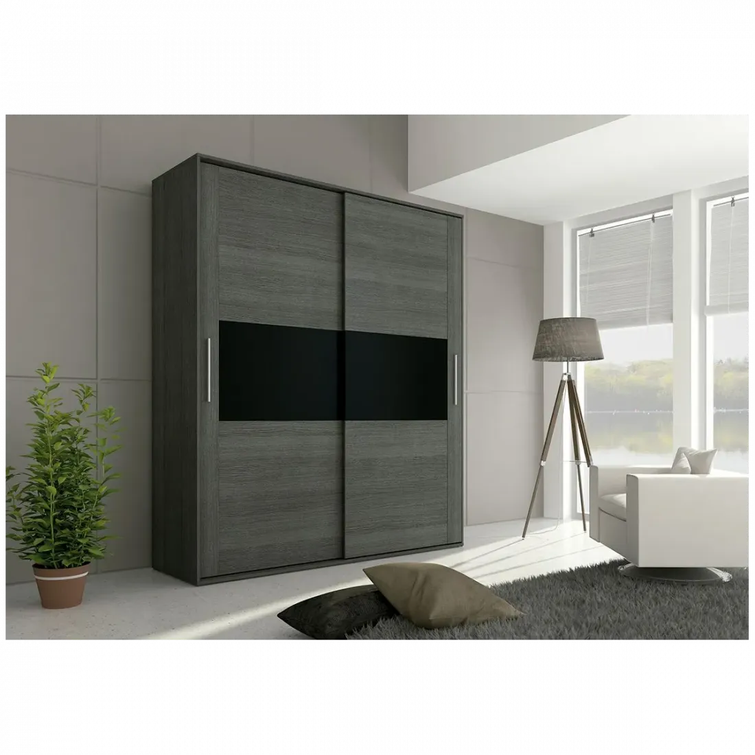 Armario de gran capacidad de la serie Rambla en ceniza combinado con negro, acabado elegante y versátil para tu dormitorio.