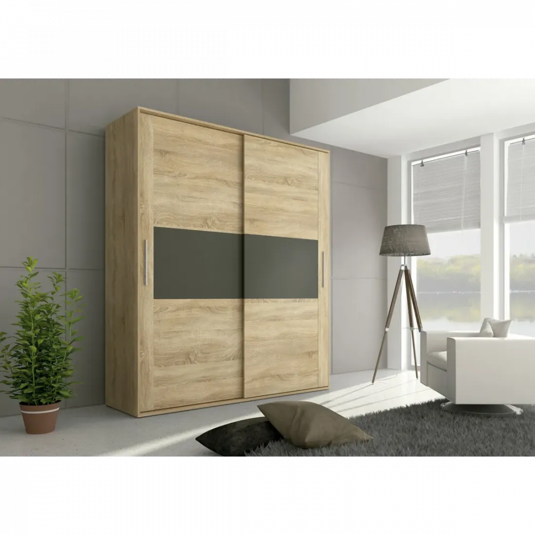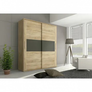 Armario de gran capacidad de la serie Priego en cambria combinado con grafito, acabado cálido, moderno y agradable para tu dormitorio.