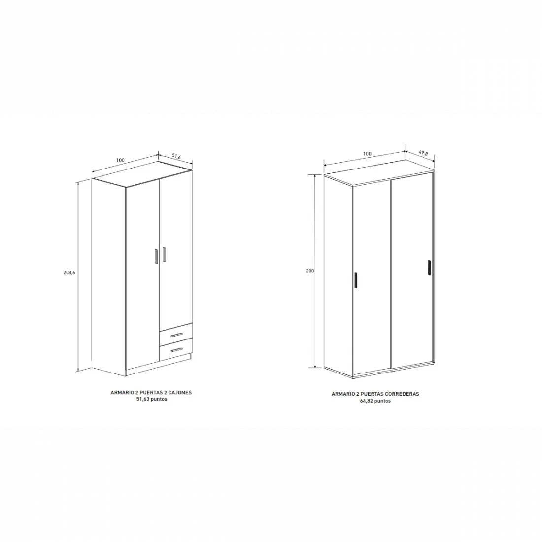 ARMARIO 2P CORREDERA CABRA BLANCO-GRAFITO