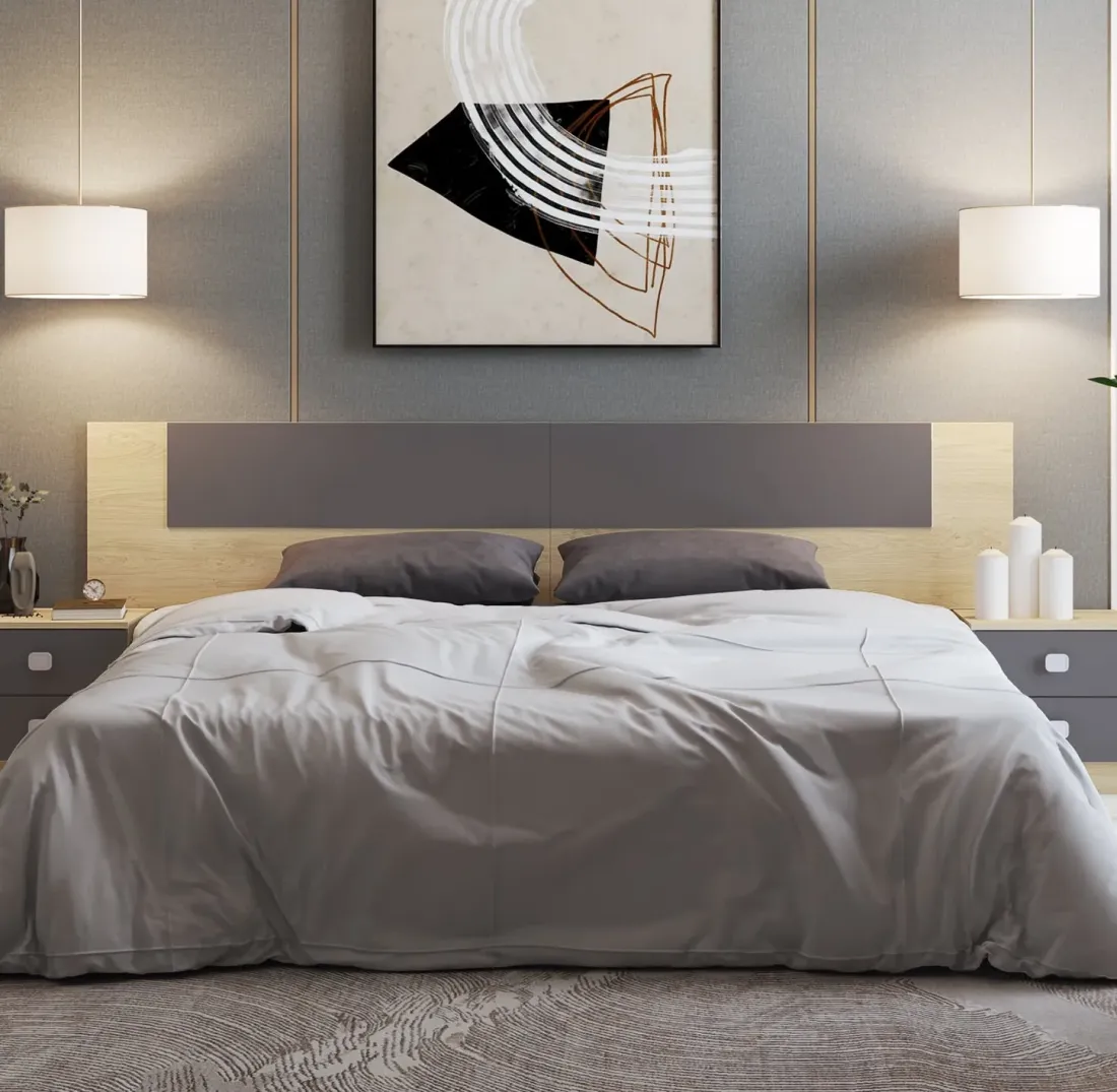 La opción perfecta para complementar tu dormitorio, este cabecero de 247 cm. de largo total disponible para poner camas de cualquier tamaño. Disponible en dos combinaciones de color con entrega rápida.