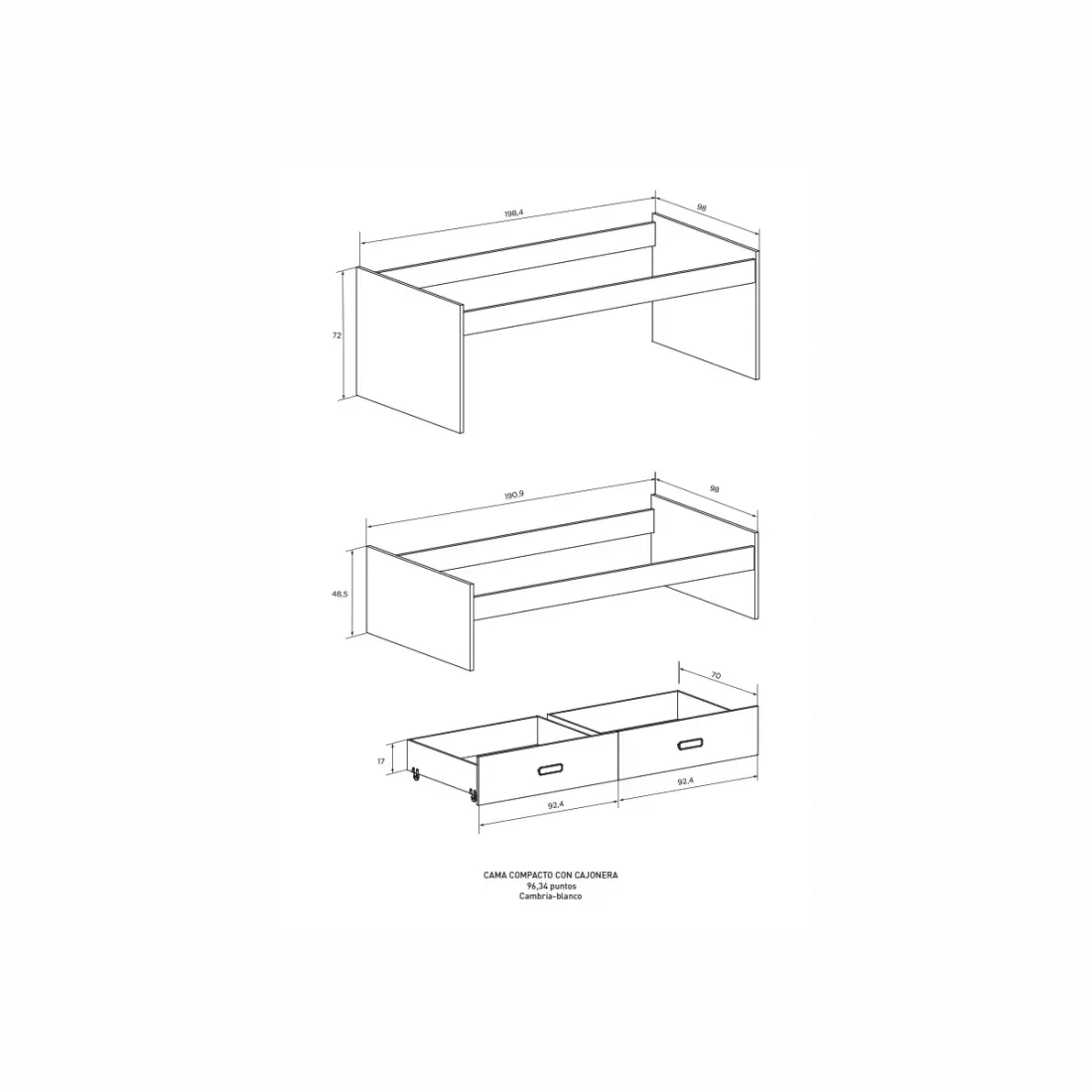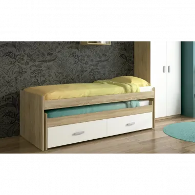 Aprovecha al máximo todo el espacio de tu dormitorio con esta cama compacta. La pieza ideal si tienes invitados, con una cama supletoria y dos amplios cajones