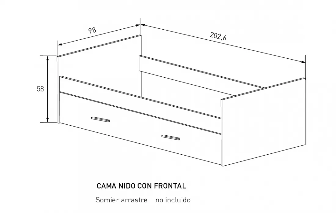 No incluye somier superior normal ni inferior de arrastre.