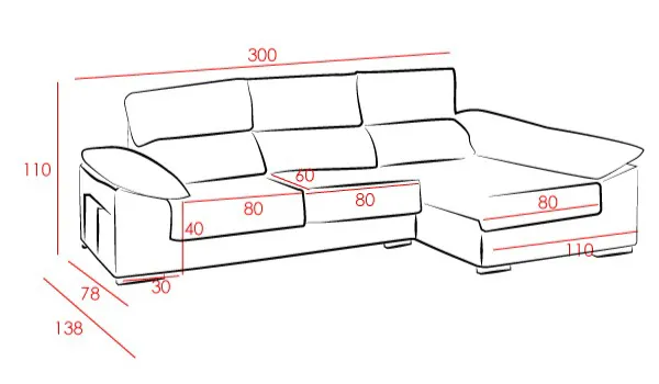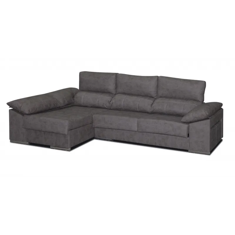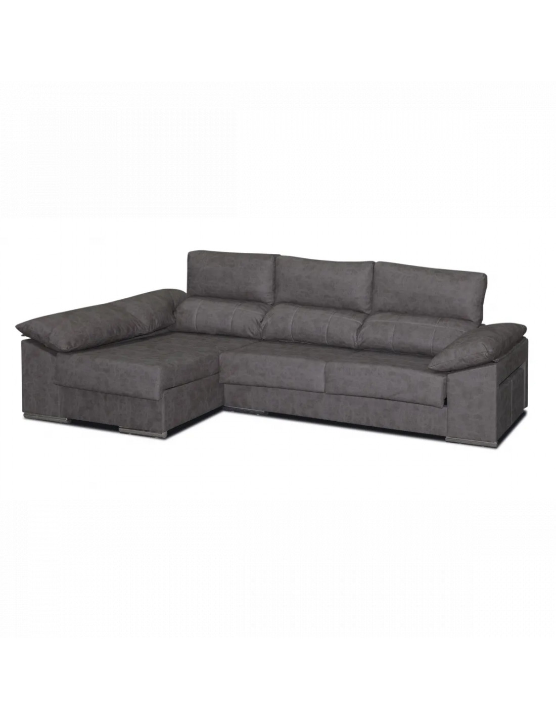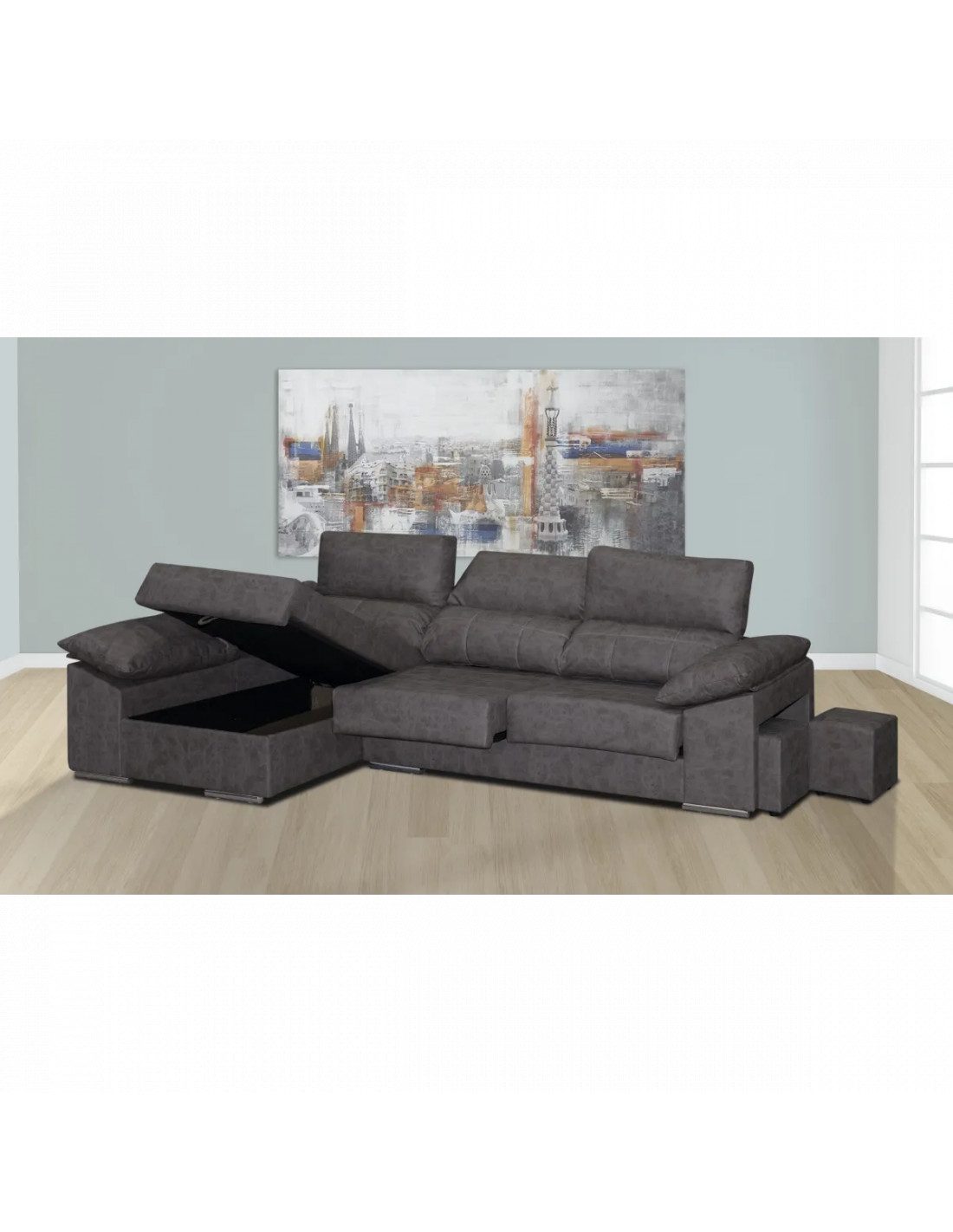 Chaiselongue Franca izquierda, modelo exclusivo y amplio gracias a sus 300cm. Incluye de todo: asientos extraíbles, respaldos reclinables, dos puffs laterales y arcón. Disponible en diferentes tapizados y colores.