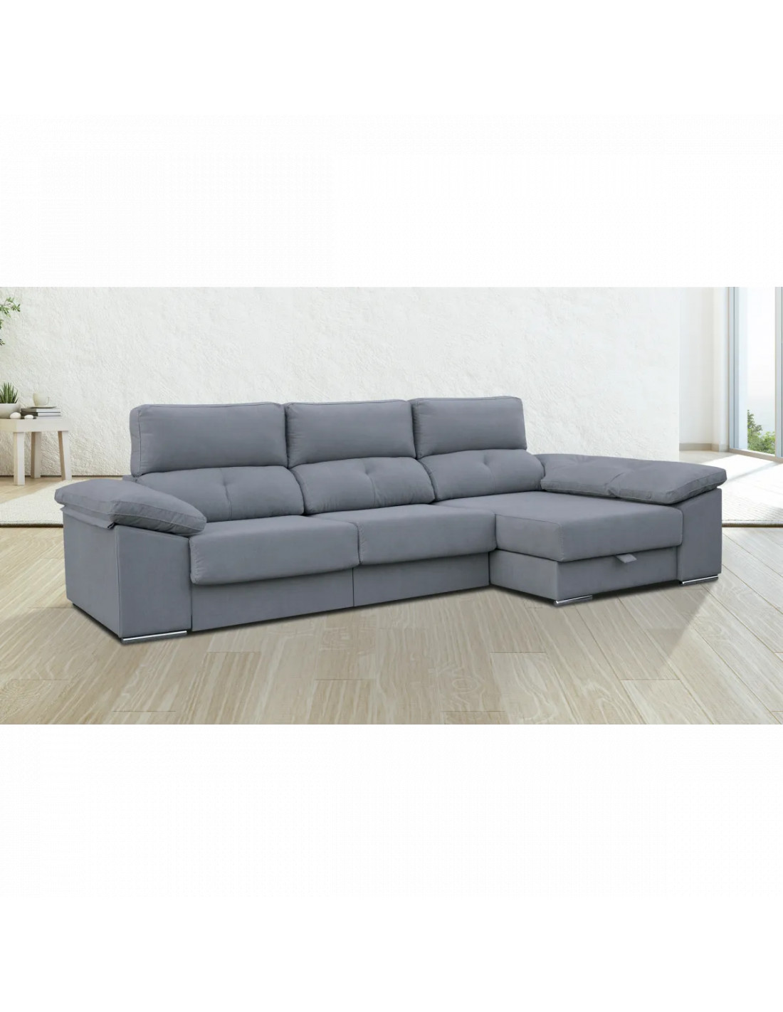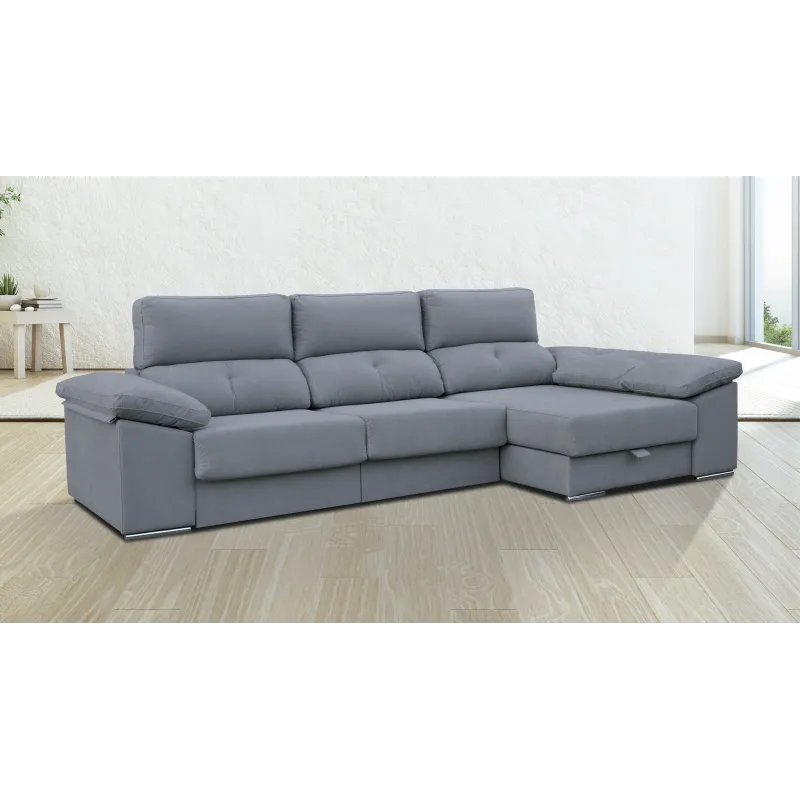 El Chaise Longue Golf es un sofá de gran comodidad y personalidad que se adapta a cualquier espacio. Tiene asientos extraíbles XXL, cabezales reclinables y un arcón porta objetos para guardar lo que necesites. Puedes elegir entre tres colores básicos, uno de ellos con entrega rápida. El sofá está fabricado con telas de primera calidad. Te lo ofrecemos en cuatro colores en nuestra web y también puedes personalizarlo a tu gusto con miles de combinaciones en nuestra tienda física y te lo fabricamos como mejor se adapte a tus necesidade