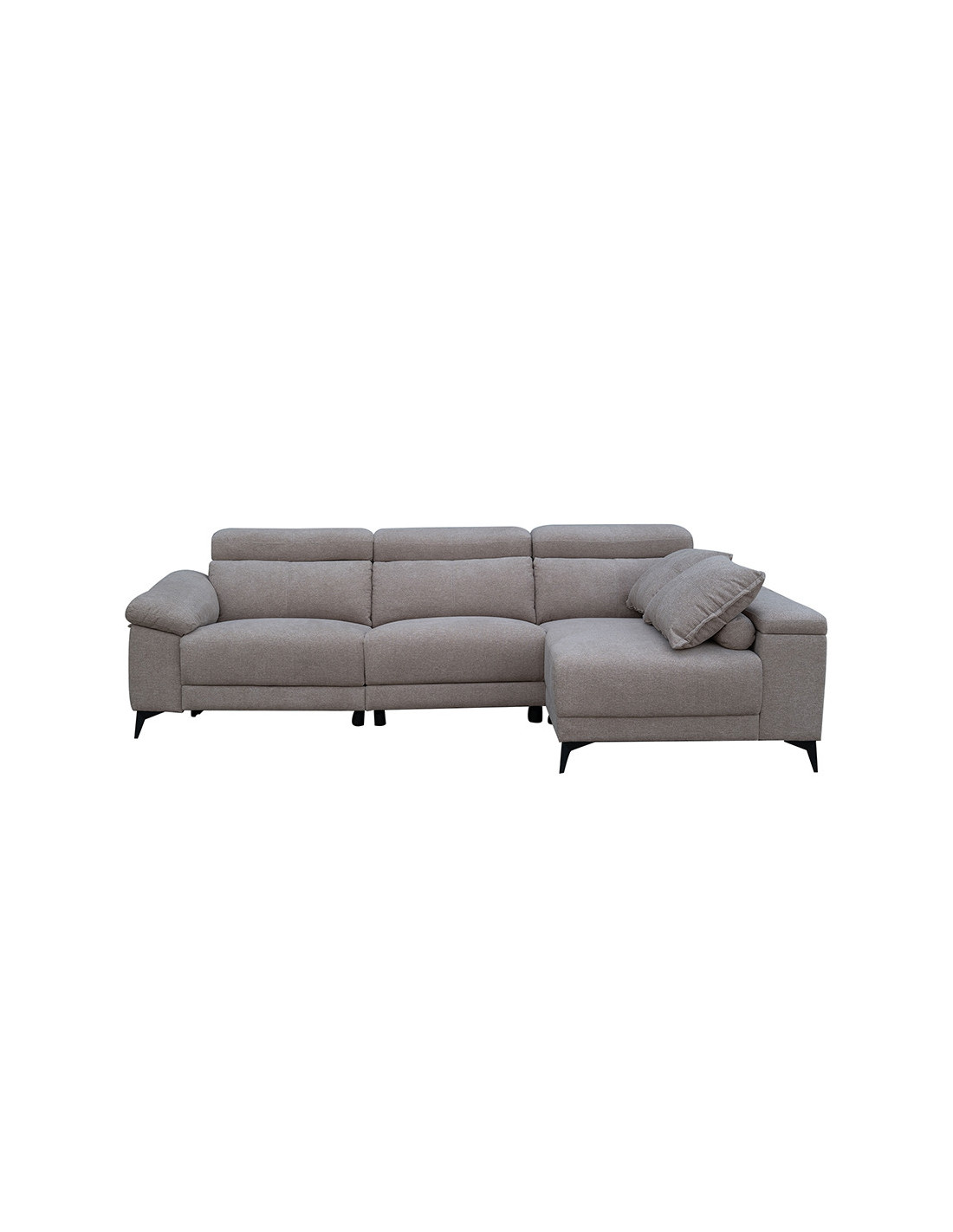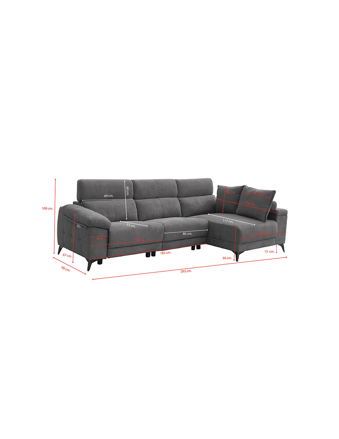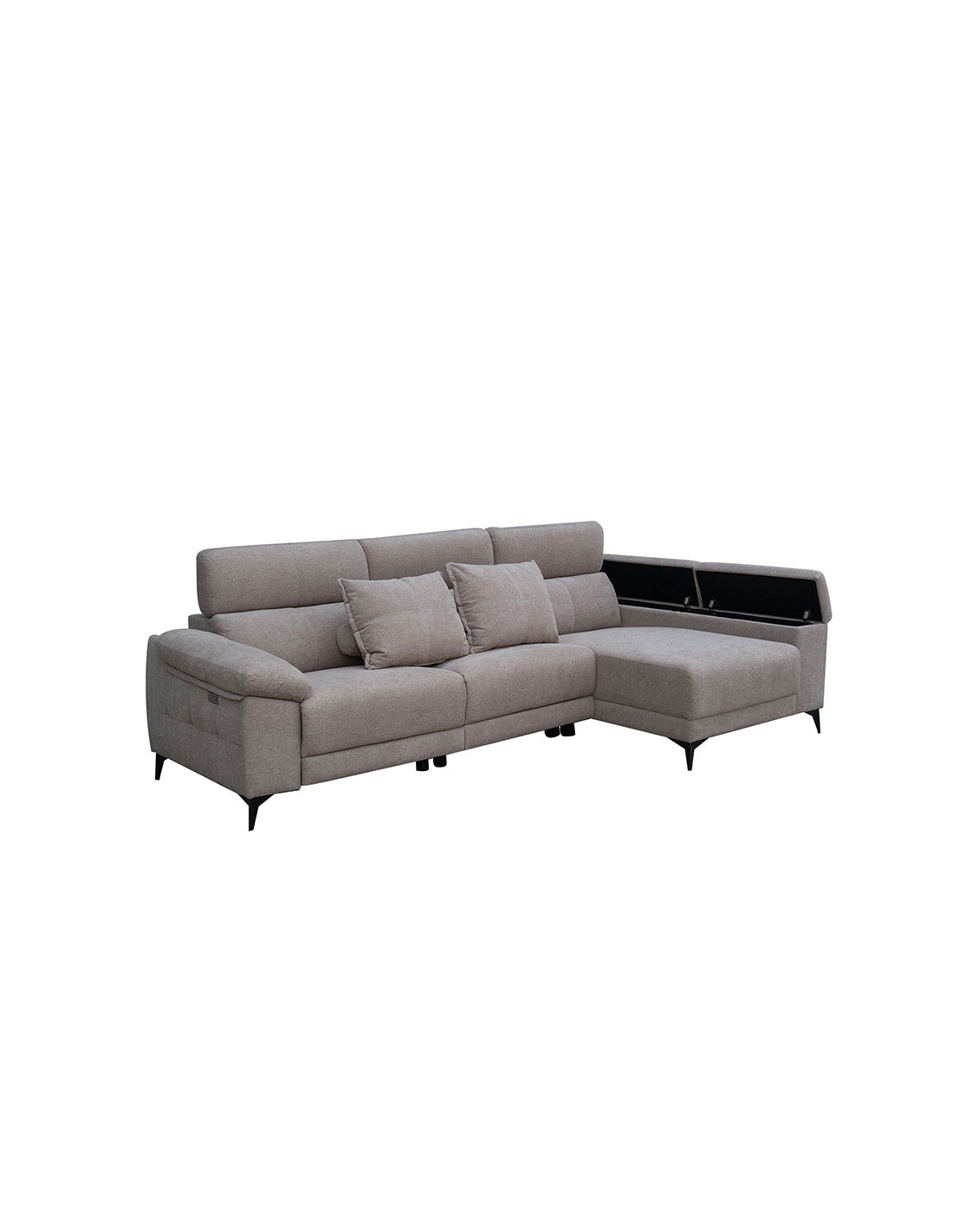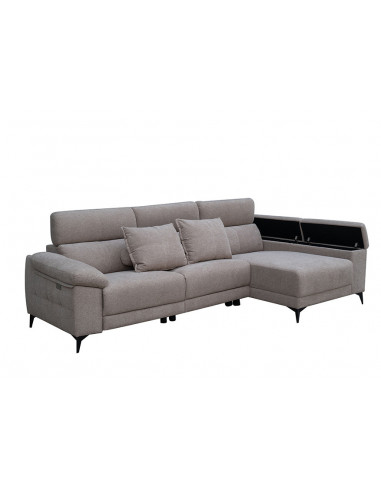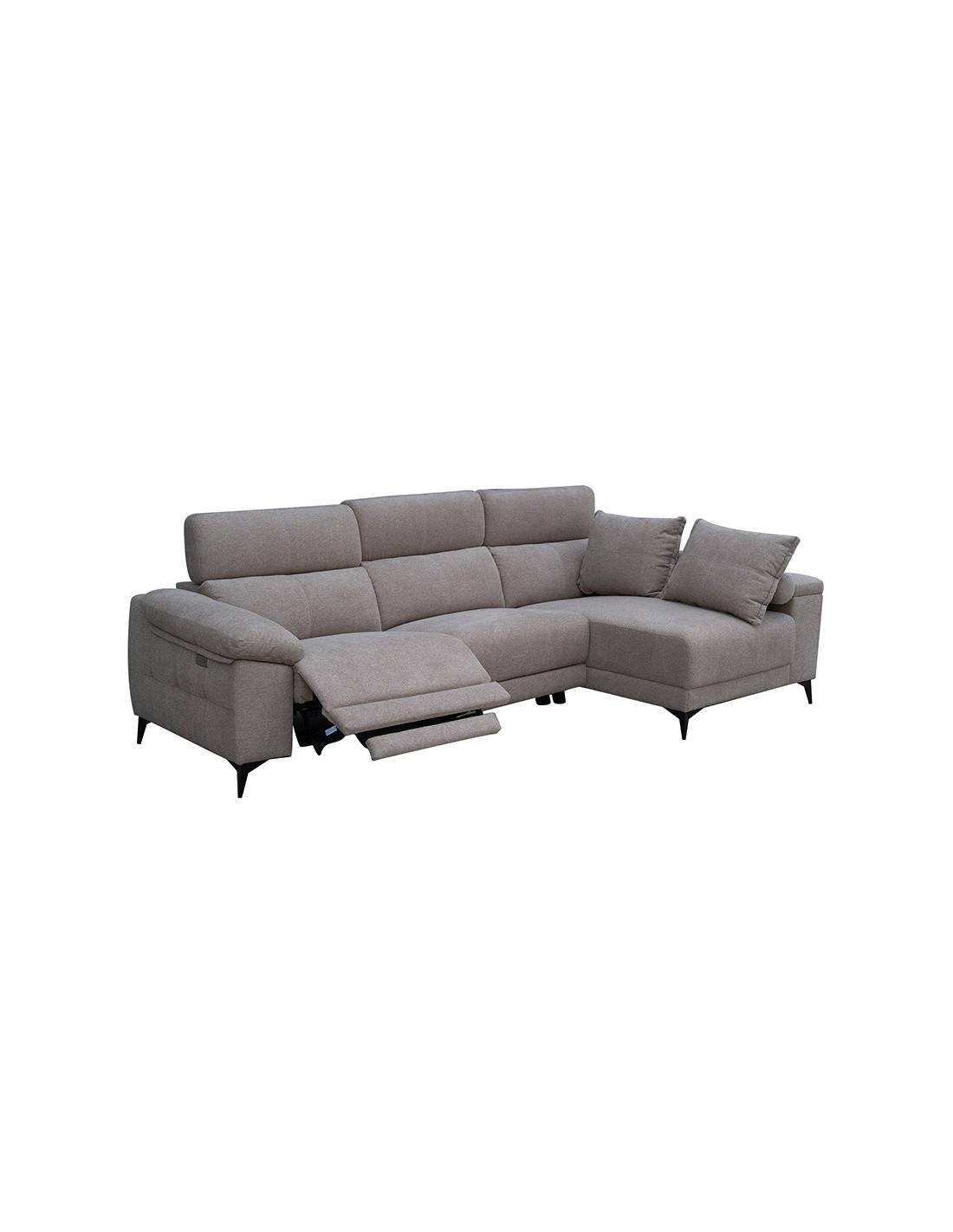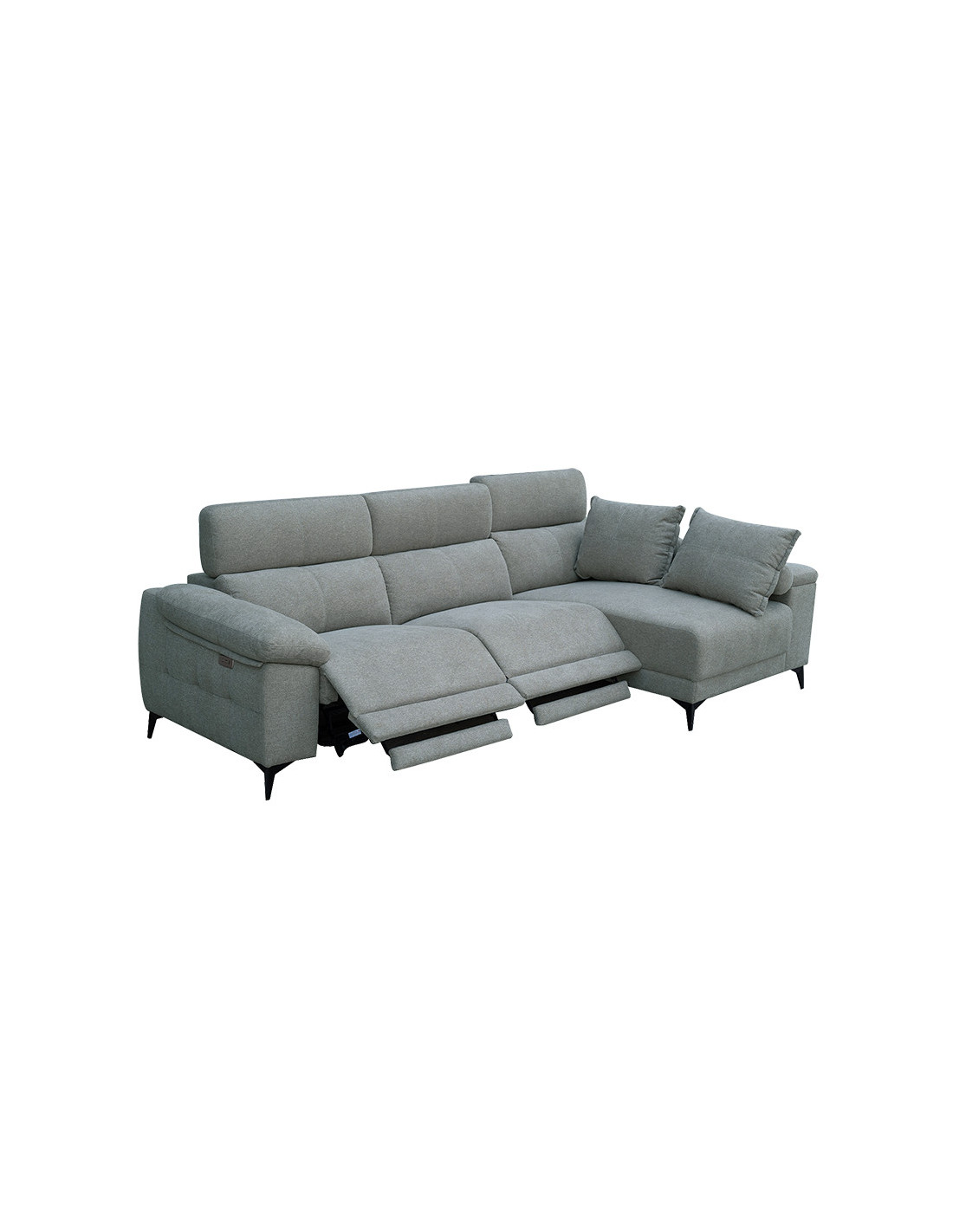 Chaiselongue derecha eléctrica Londres. Dispone de un mecanismo de relax motorizado con botonera en en los dos asientos + 1 conector USB. Disponible en color gris o beige.