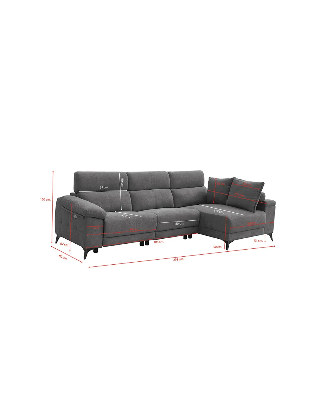 La chaiselongue Matías mide 265cm, amplio y con arcón, asientos extraíbles y respaldos reclinables