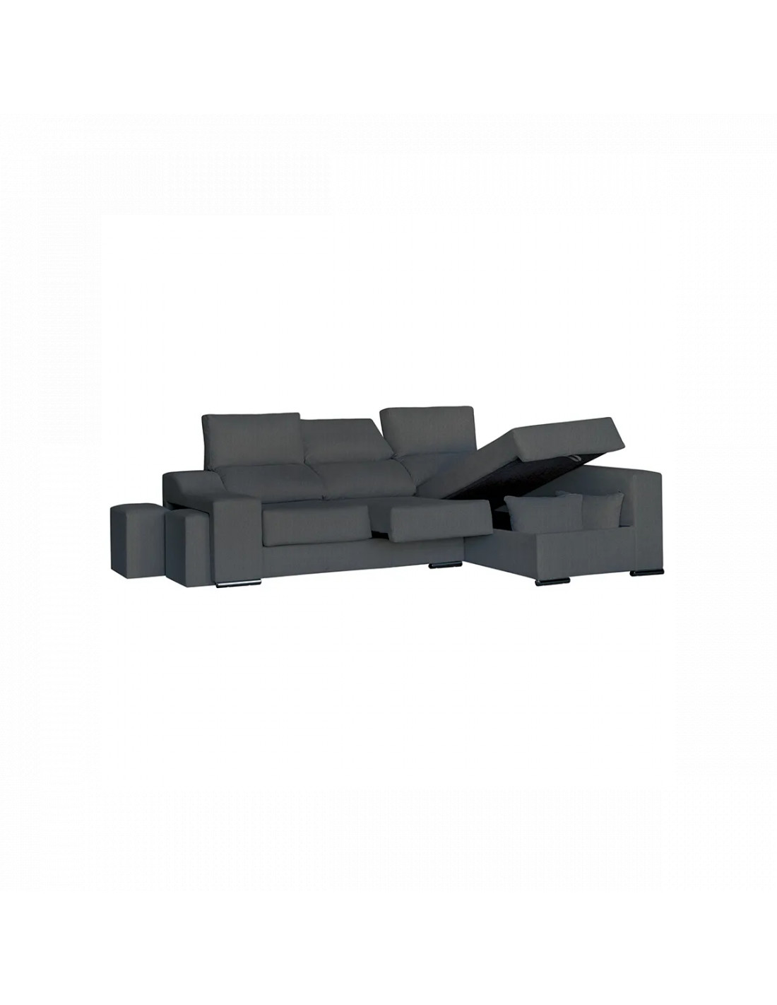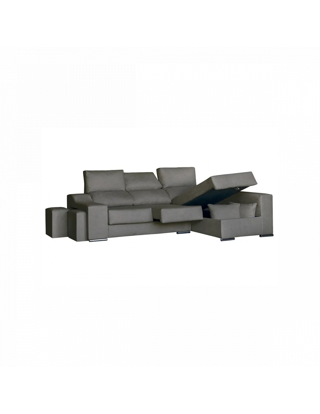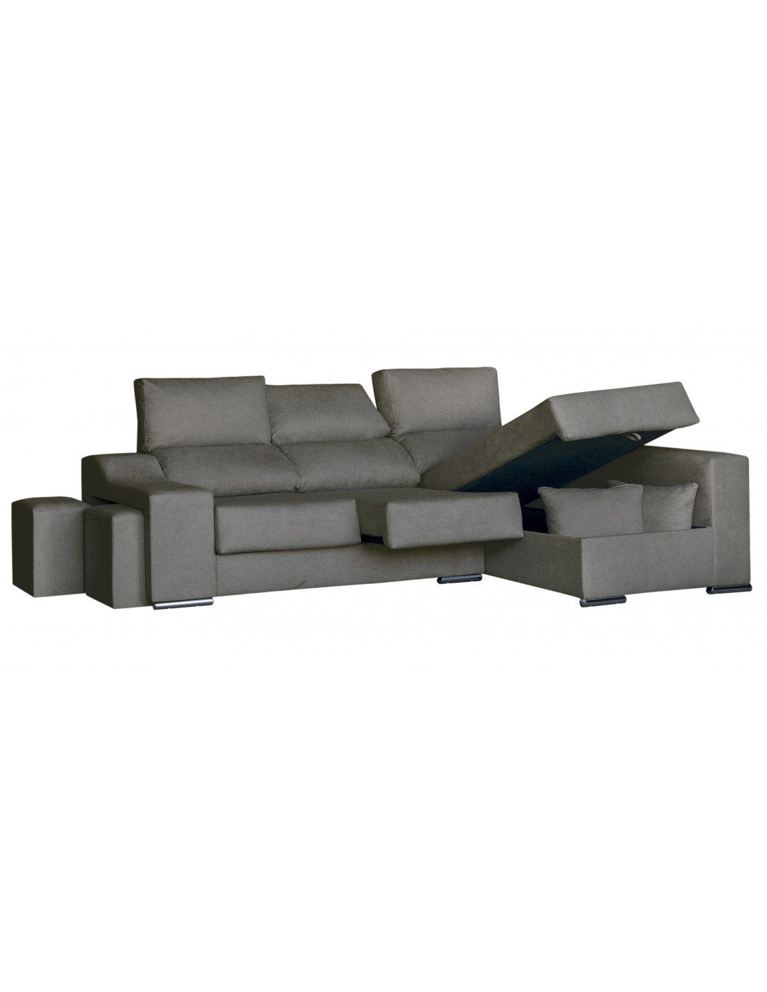 La chaiselongue derecha Málaga es un modelo de 255cm. Tiene arcón en el módulo chaisleongue, dos pouff, respaldos reclinables y asientos extraíbles. Disponible en tapizado beige y gris antimanchas