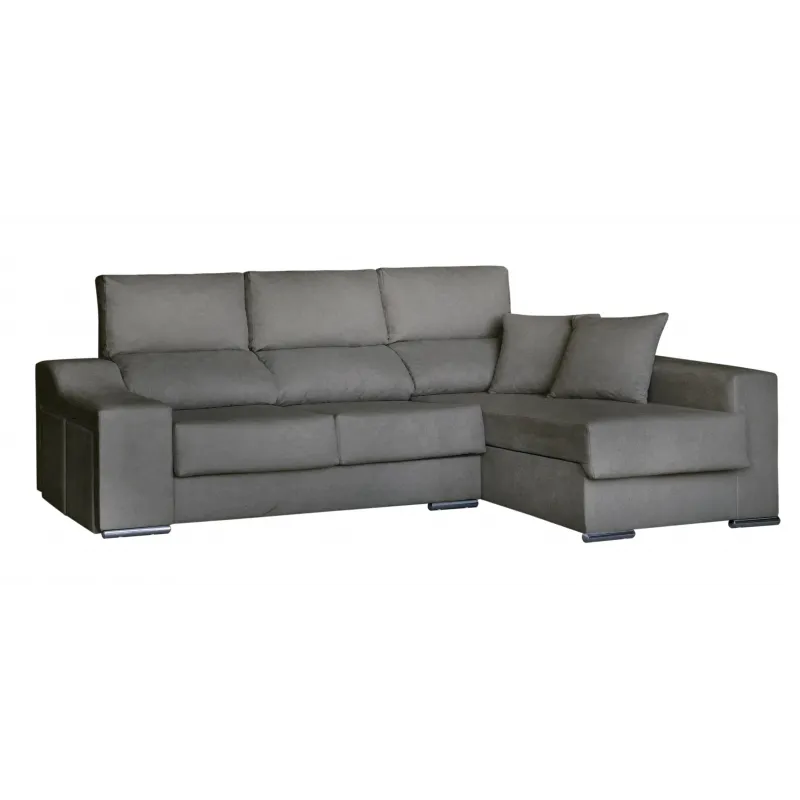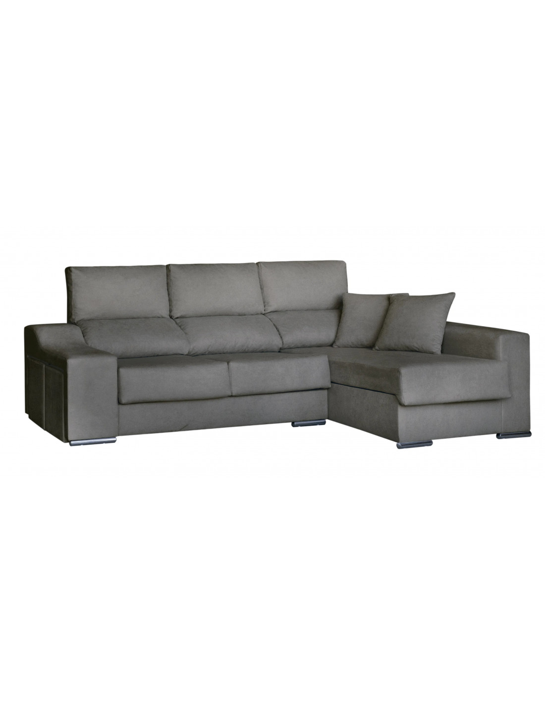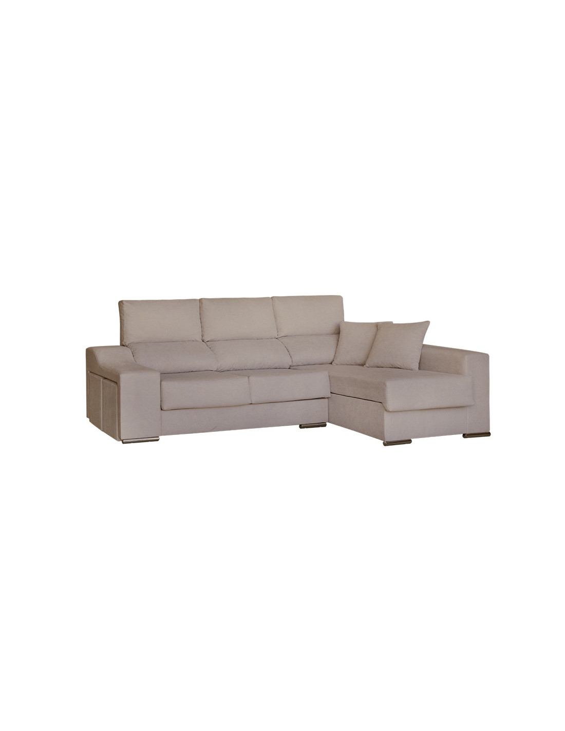 La chaiselongue derecha Málaga es un modelo de 255cm. Tiene arcón en el módulo chaisleongue, dos pouff, respaldos reclinables y asientos extraíbles. Disponible en tapizado beige y gris antimanchas