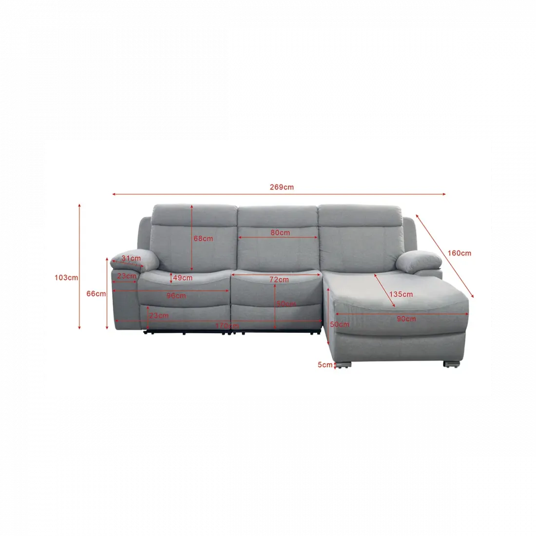 Moderna y comodísima Chaise Longue de 263 centímetros, tapizada en elegante tela de color beige o gris. Aprovecha esta oferta y amuebla tu salón con este sofá chaise longue al mejor precio de Internet