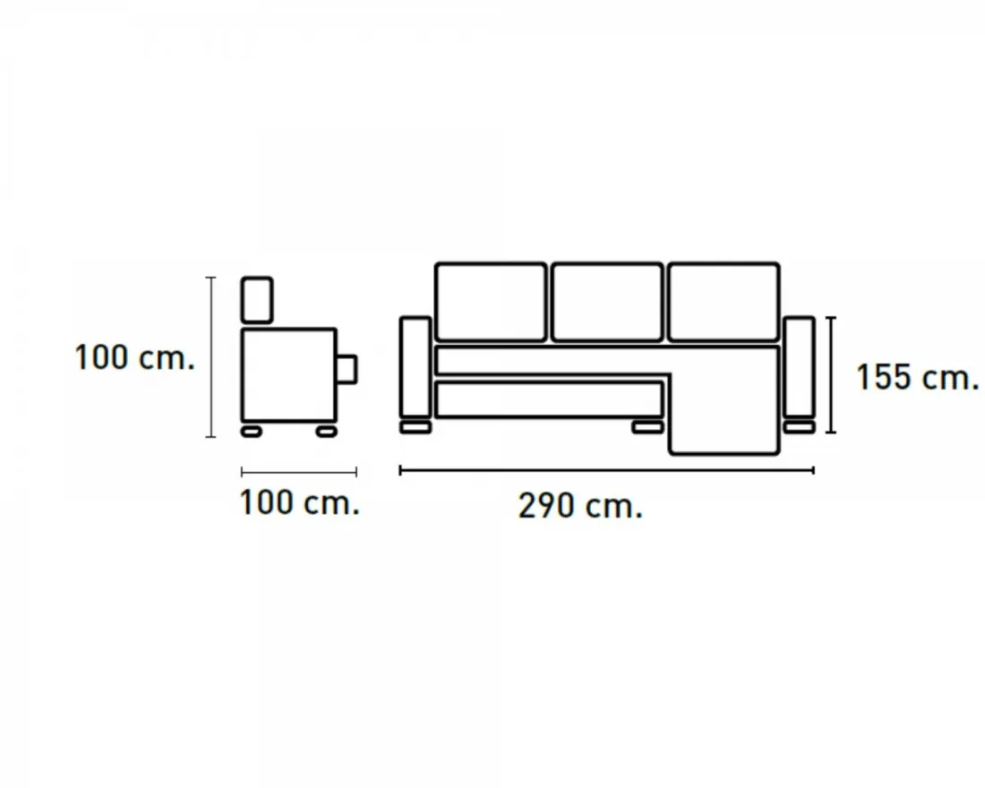 - Armazón: Madera de pino con costado de DM y aglomerado de 1ª calidad, reforzado con escuadras, revestido con espuma de poliuretano.