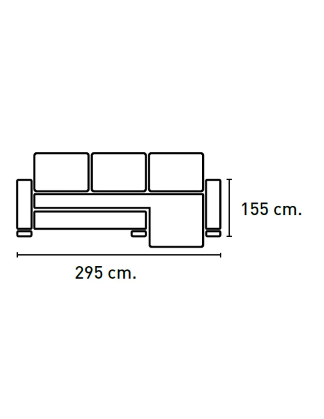 Medida Toyota Chaiselongue derecha: ancho 295 cm, alto 100 cm, fondo 155 cm.