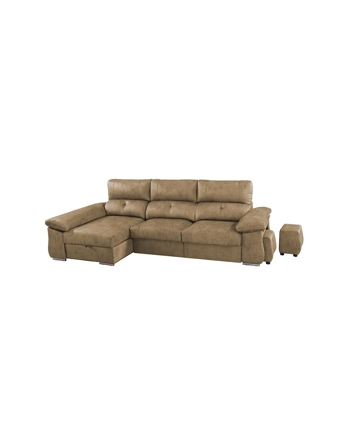 Sofá Chaise Longue Cupra izquierda con estructura en madera de pino, asiento de espuma con muelle ensacado, respaldos reclinables y patas cromadas. Tapizado antimanchas