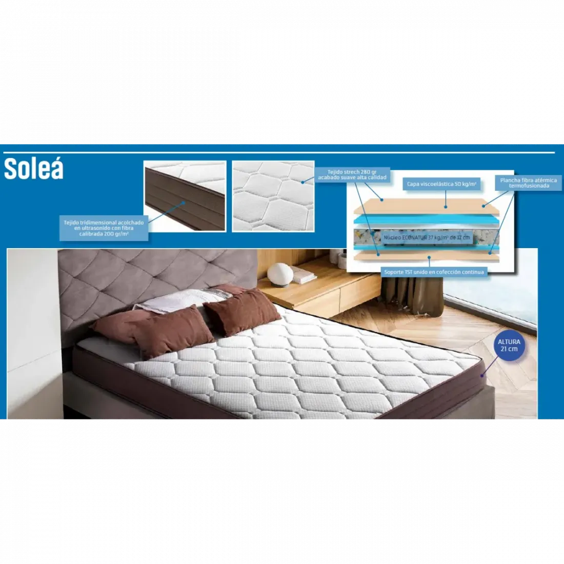 El colchón Solea es un modelo económico y práctico. Con 21cm de altura y disponible en 8 medidas diferentes.