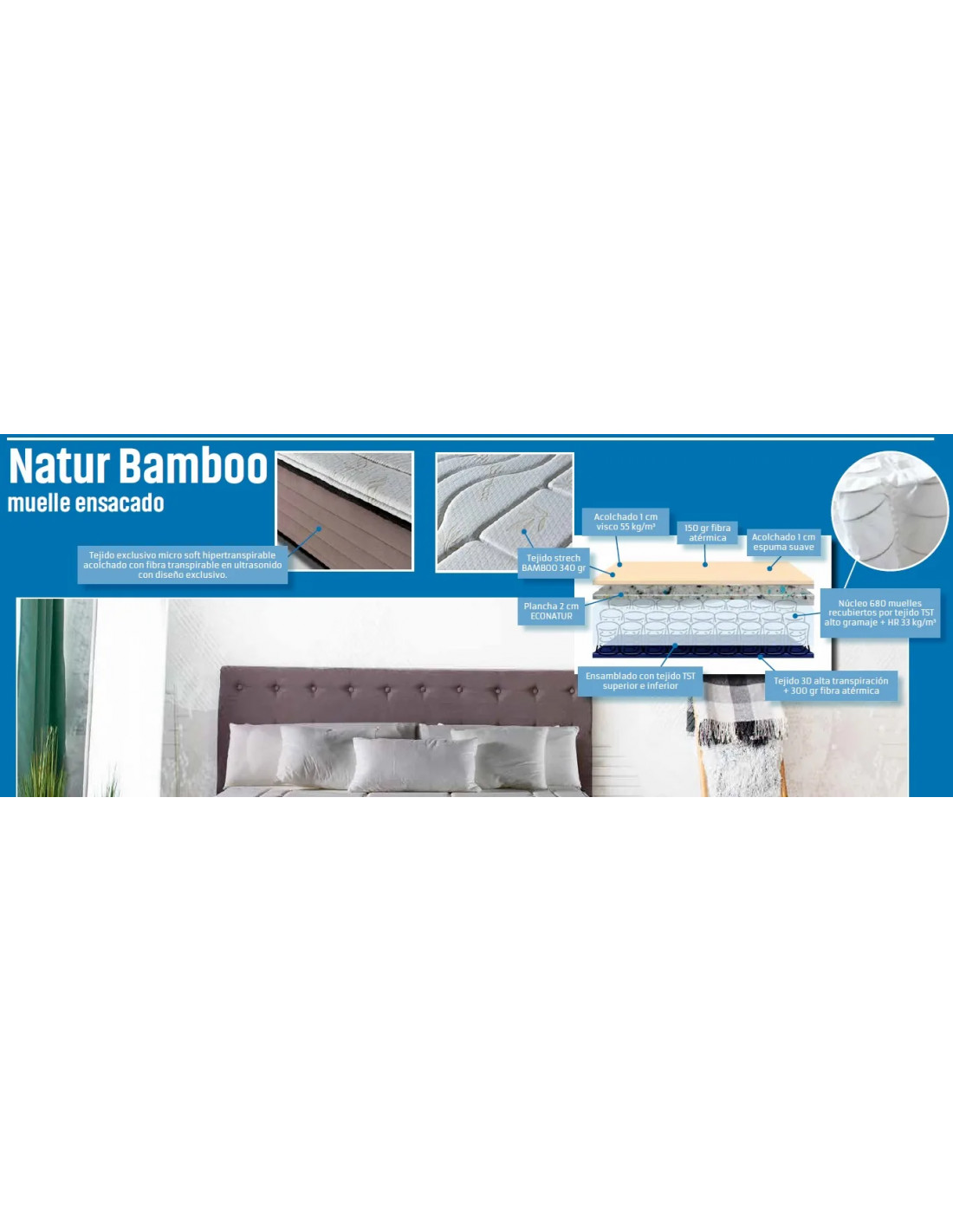 El colchón Naturbambo te asegura gran confort gracias a su núcleo de muelle ensacado, que consigue firmeza, adaptabilidad y resistencia. Está disponible en 8 medidas diferentes.