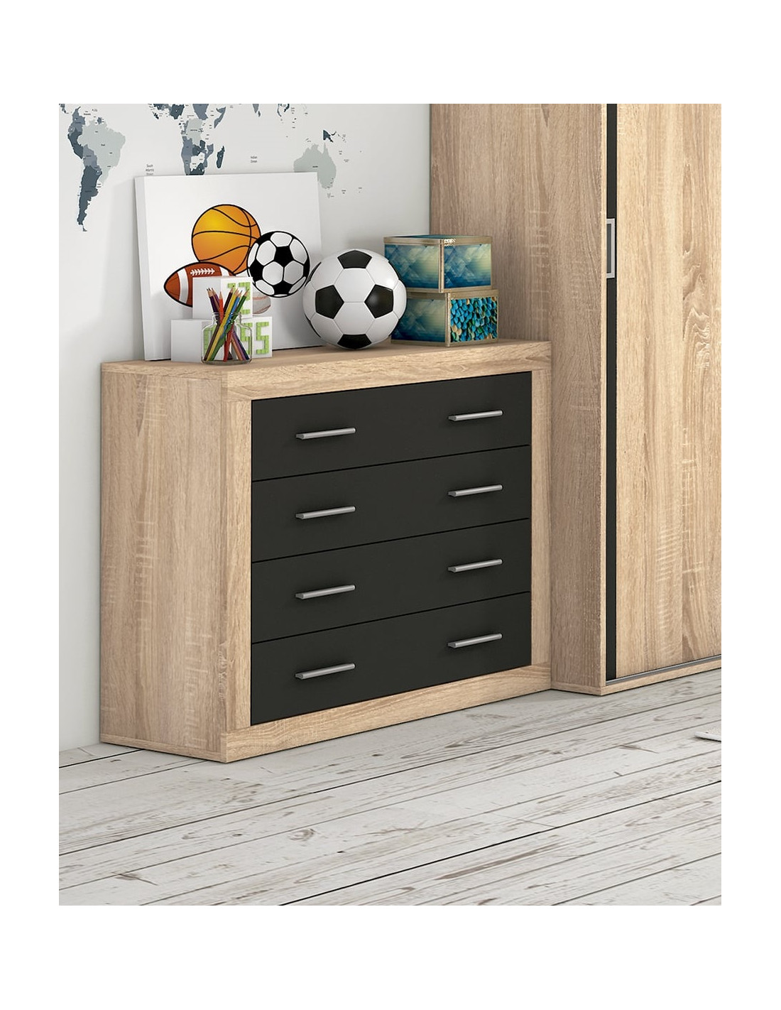 COMODA 4 CAJONES LARA CAMBRIA-GRAFITO - CAMBRIA-BLANCO - ANDERSENPINO-GRIS
