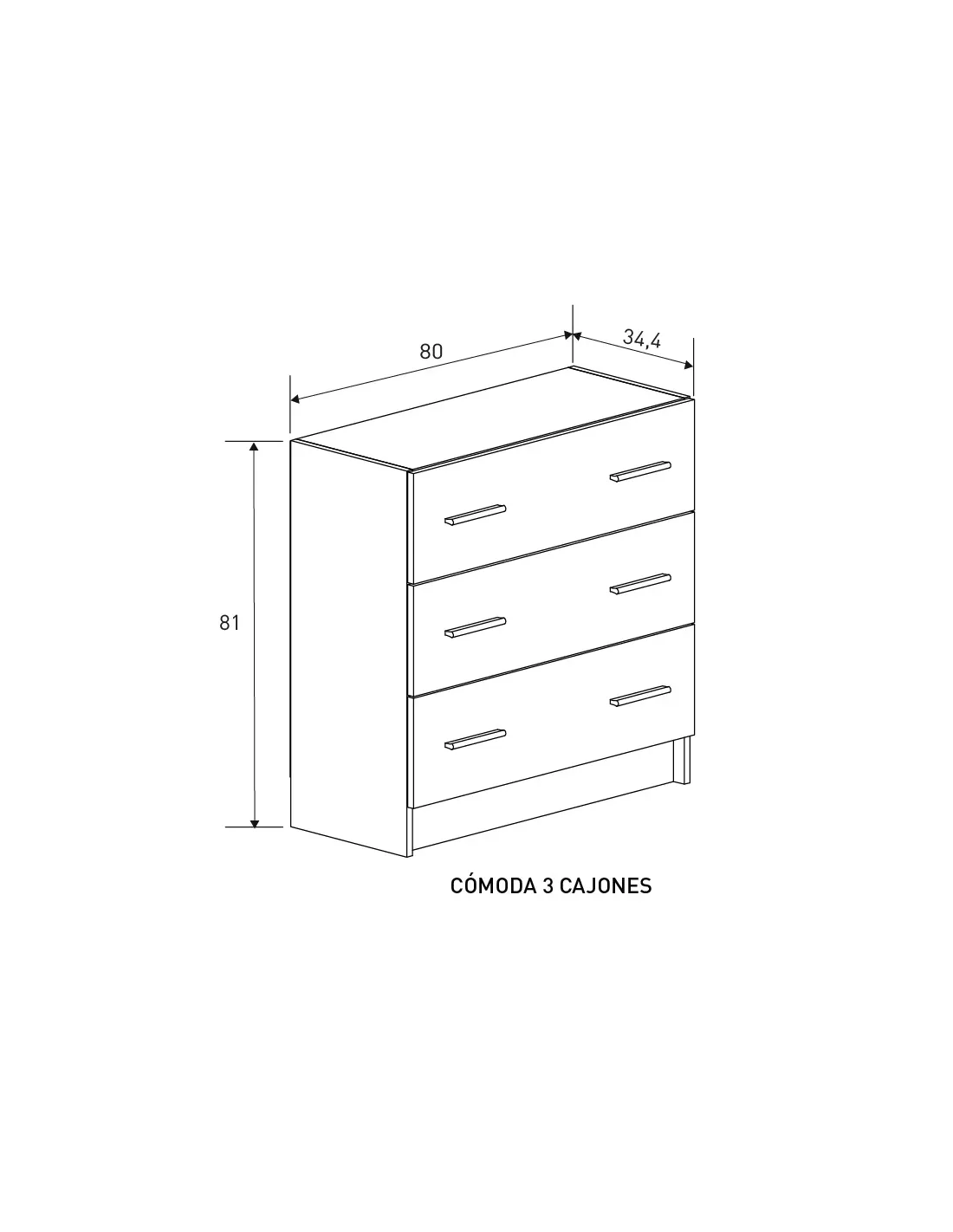 COMODA 3 CAJONES MODELO AURA