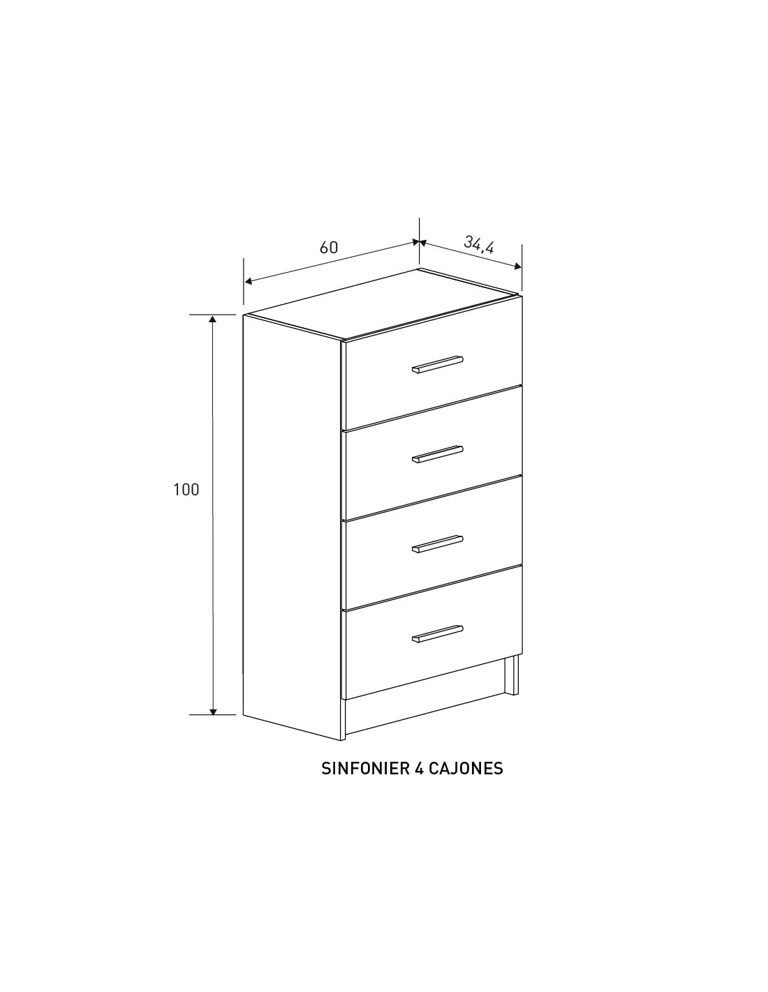 - Dimensiones: 100 cm de alto, 60 cm de ancho y 34,4 cm de profundidad, lo que lo hace ideal para habitaciones con espacio limitado, manteniendo una gran capacidad de almacenamiento.