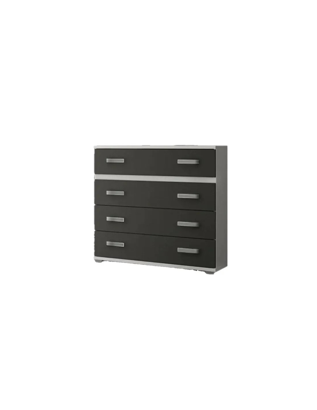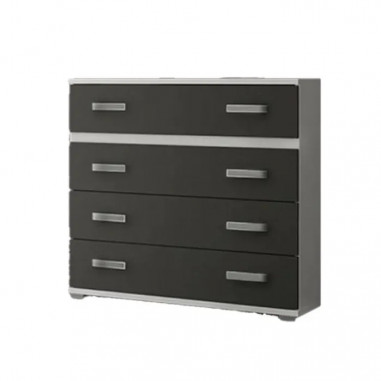 Ponemos a tu disposición nuestra cómoda baja con 4 cajones en color grafito con un estilo moderno de líneas rectas, esta cómoda es la solución a los problemas de almacenaje.