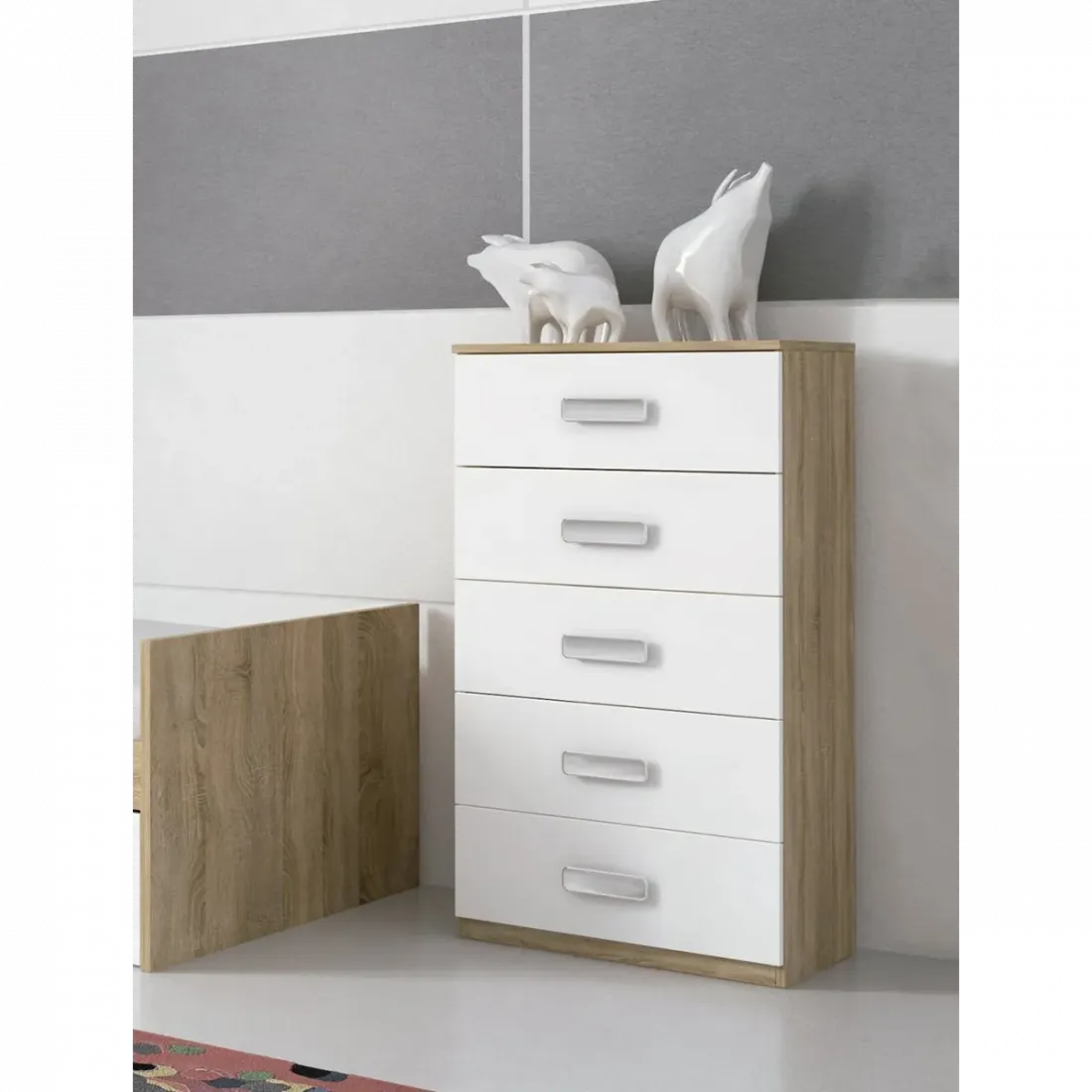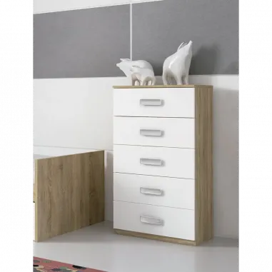 Práctico sinfonier de 5 cajones de la serie Champion de nuestra web. El color de la base es Cambria y los frentes en blanco liso.