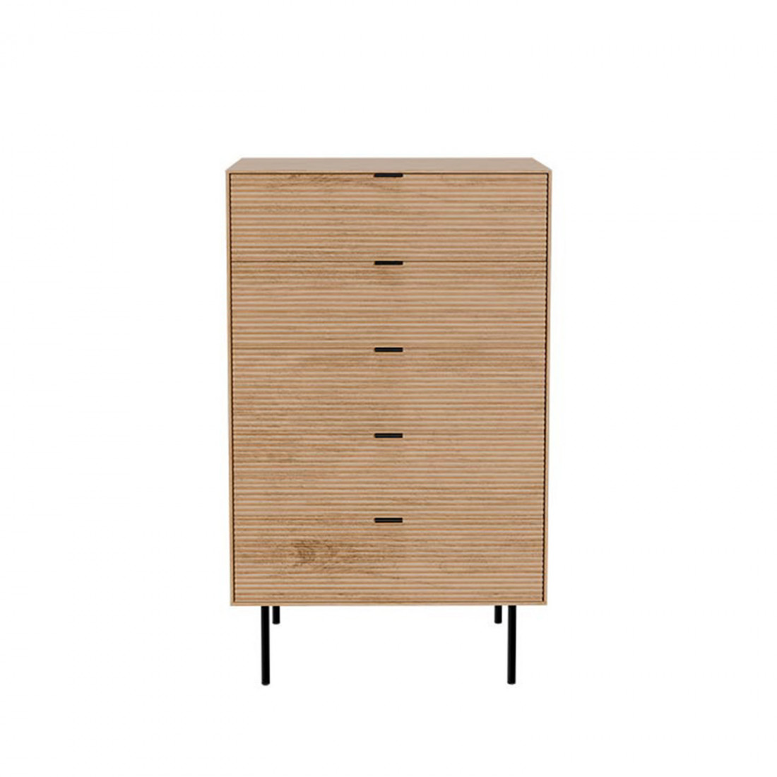 El sinfonier TULSA de cinco cajones es una solución de almacenaje vertical que maximiza el espacio con estilo. Su diseño esbelto y funcional lo hace ideal para dormitorios con estética cuidada y necesidad de orden.