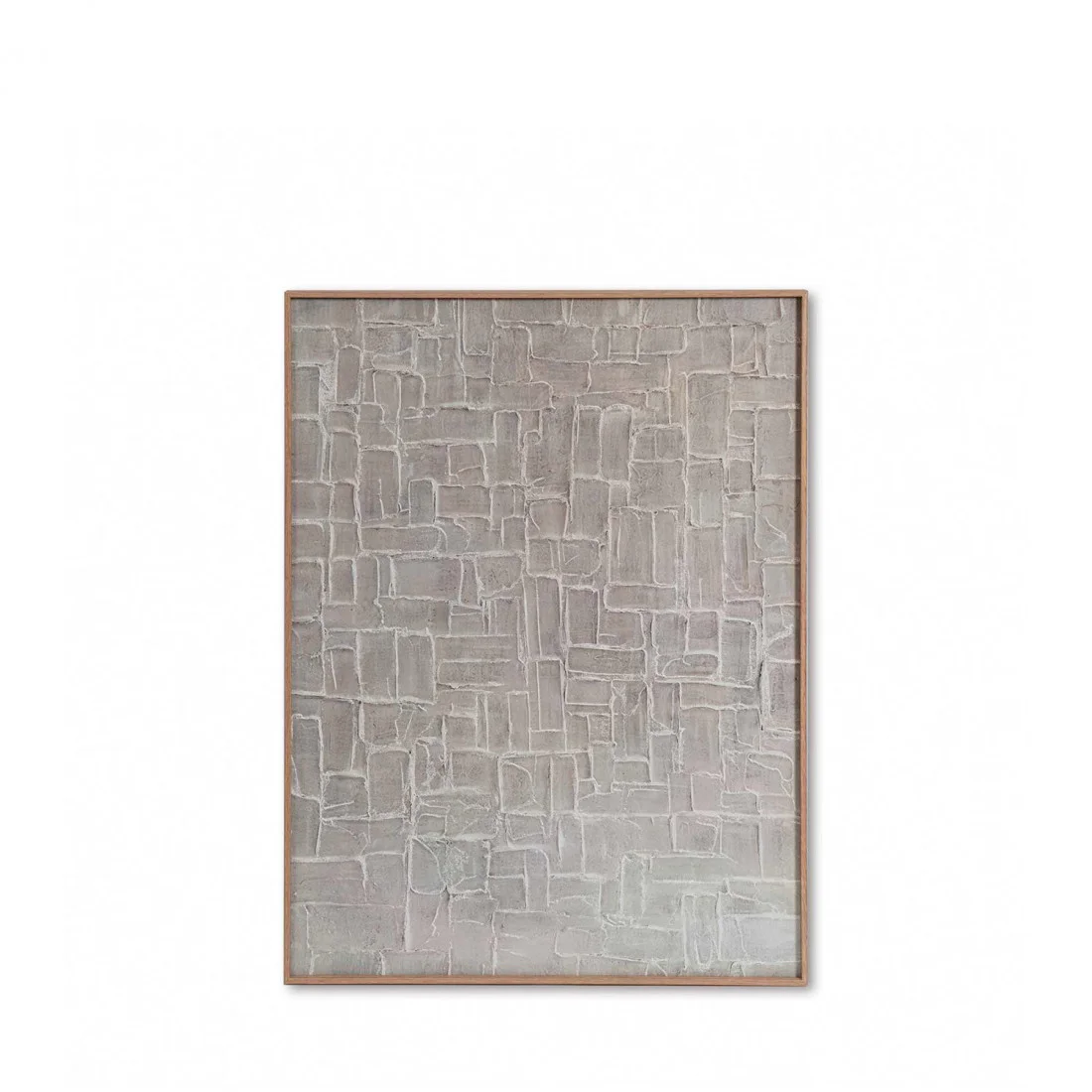 En formato de 60x80 cm y enmarcado con aluminio acabado en textura de madera, este cuadro encaja perfectamente en interiores contemporáneos o serenos que valoran los matices del material y la discreta elegancia de lo bien construido.