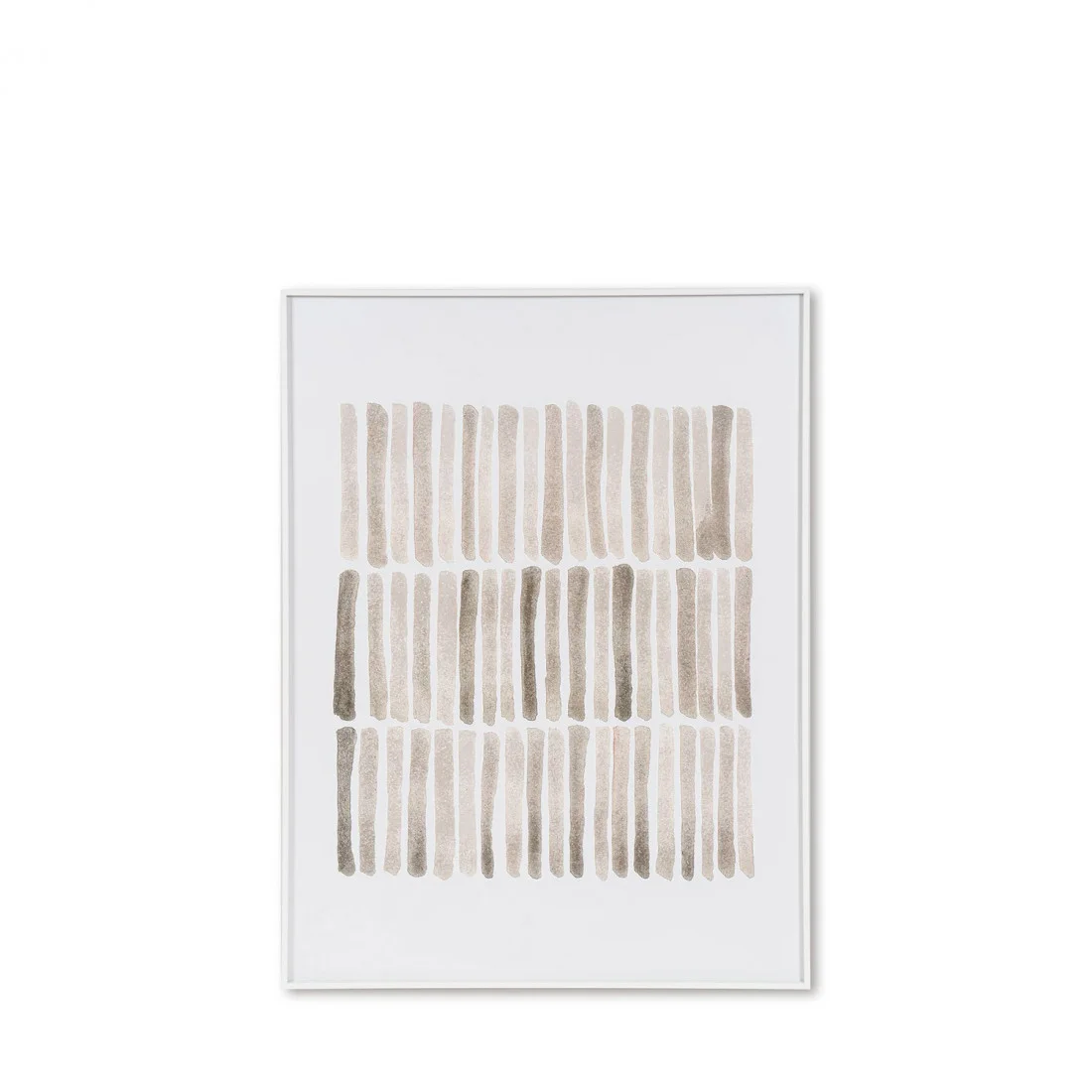 Con su formato de 60x80 cm y enmarcado en aluminio blanco, esta pieza encaja perfectamente en espacios serenos, minimalistas o de inspiración nórdica. Su textura sutil añade calidez y naturalidad sin romper la armonía del conjunto.