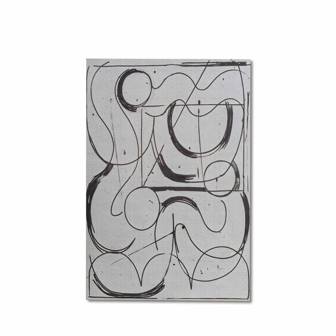 Con un formato de 80x120 cm, ELIPSE es un cuadro sobre lienzo sin marco que juega con el movimiento y la fluidez del trazo. Sus líneas negras, dinámicas y continuas, recorren la superficie creando formas curvas y abiertas que evocan el ritmo del pensamiento, del cuerpo o del paisaje interior.