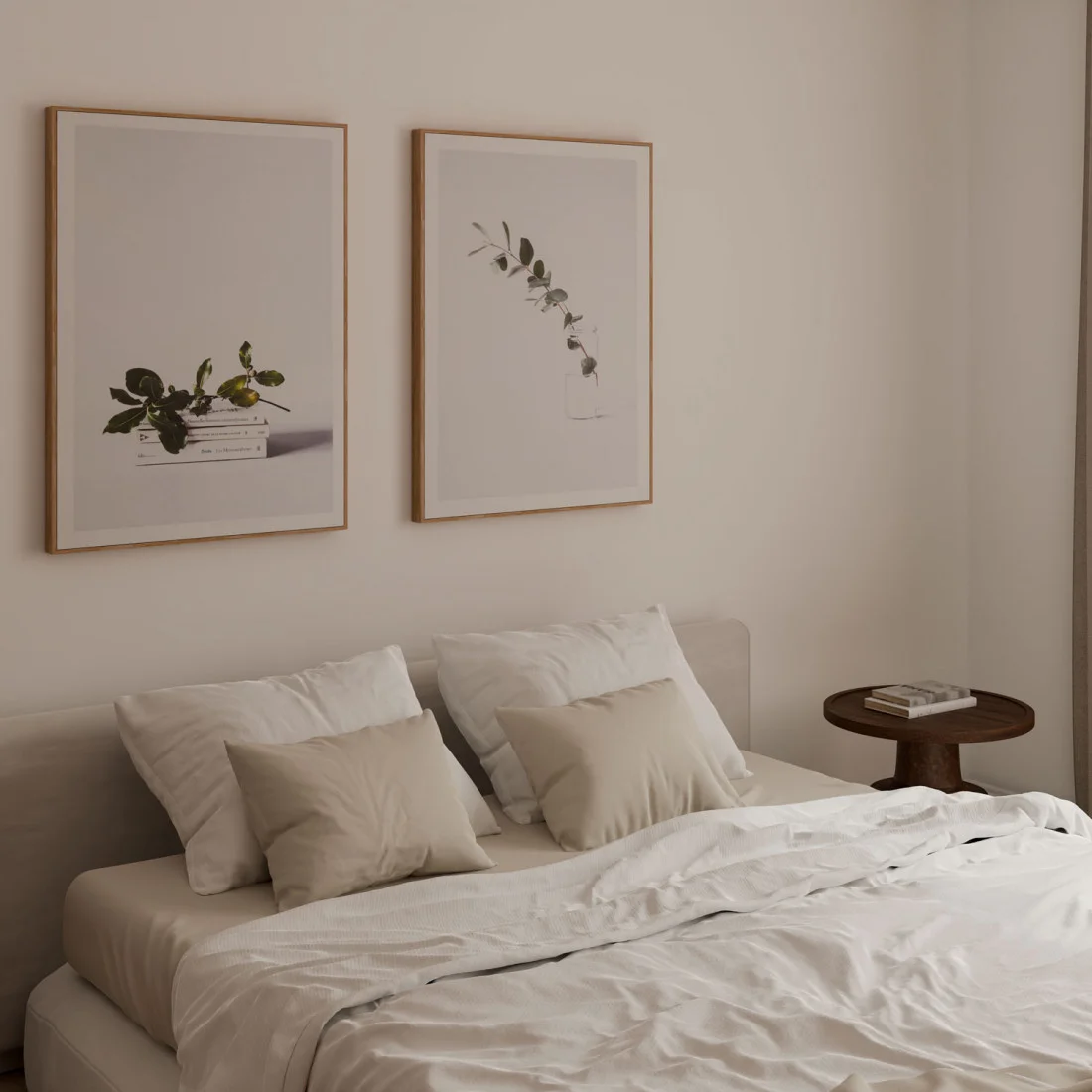 Se sigue usando la paleta de colores de este collage: beige, verdes y blancos.