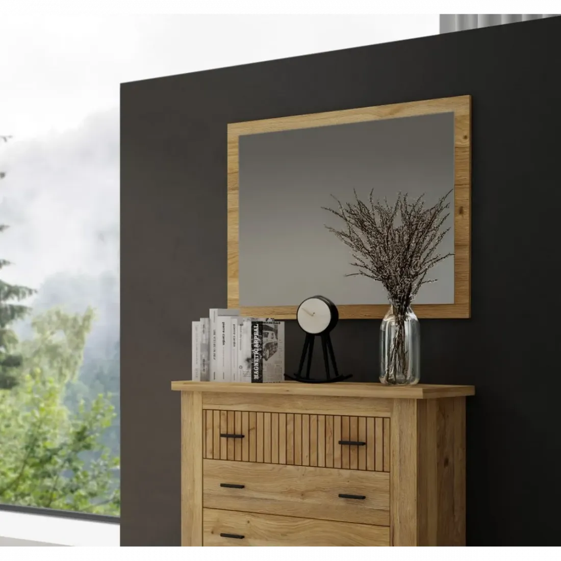 El espejo BREMEN se distingue por su diseño moderno y funcional, convirtiéndose en una pieza clave para potenciar la luminosidad y la sensación de amplitud en cualquier espacio, ya sea un salón, dormitorio o recibidor.