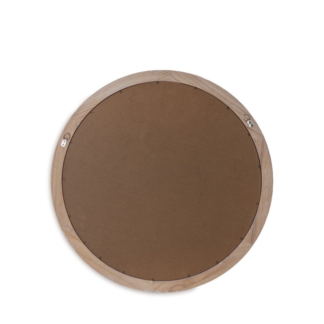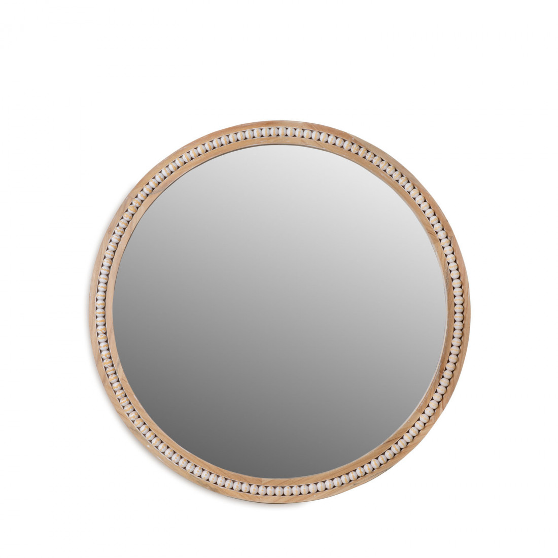 Con su forma esférica, el espejo irradia suavidad y armonía, cualidades que lo convierten en un elemento perfecto para complementar y realzar la decoración de cualquier estancia. Su marco presenta un detalle de cuentas talladas, rematado con un acabado blanco envejecido, que evoca un aire vintage y artesanal.