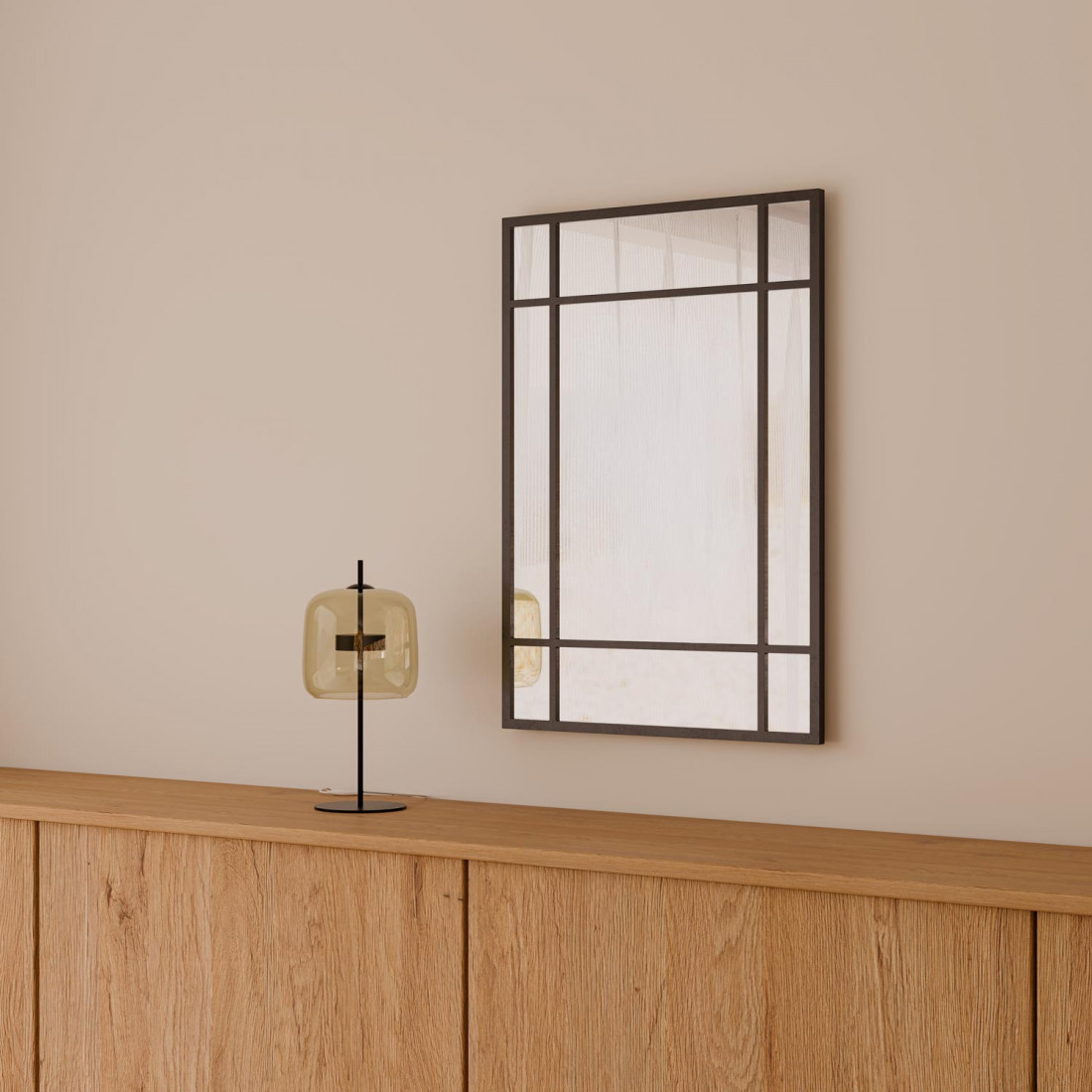 El espejo TUCSON encarna una elegancia contemporánea con su marco de metal negro que aporta estructura y carácter. Su diseño, inspirado en líneas arquitectónicas puras, combina formas rectangulares y ángulos definidos que añaden un toque artístico a cualquier pared.