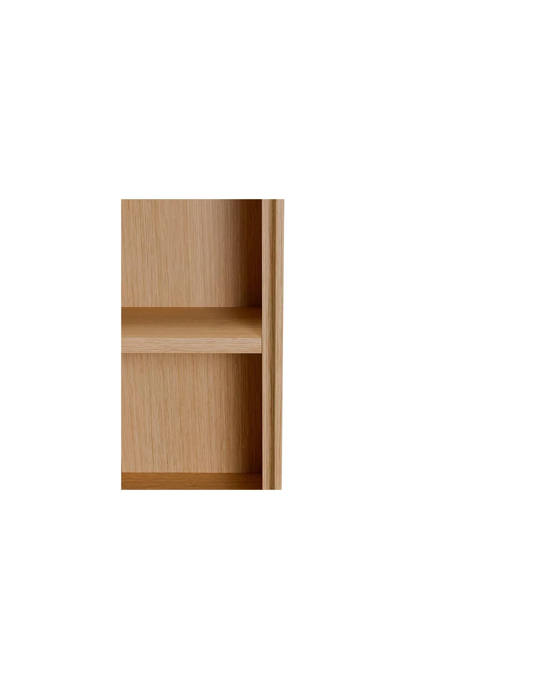 Contenedor de pared TULSA en chapa de roble natural. Con estantes interiores y apertura push, es perfecto para un almacenamiento elegante y discreto.