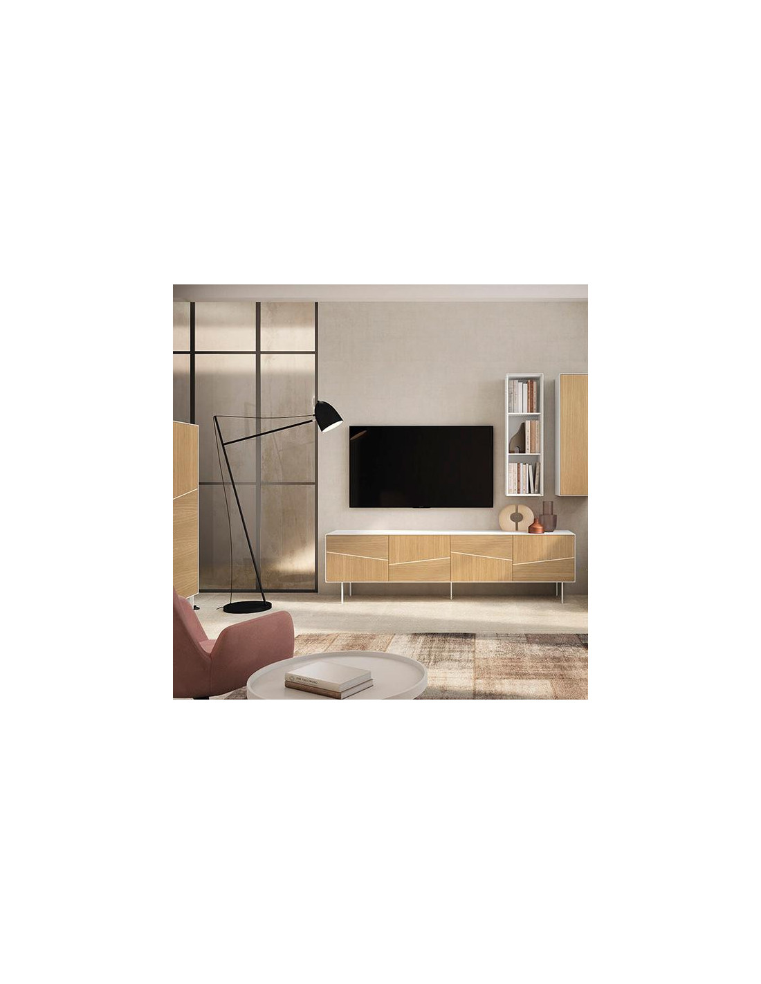 Estructura DM lacado blanco, frentes en chapa de roble natural con raya fresada lacada blanco.
