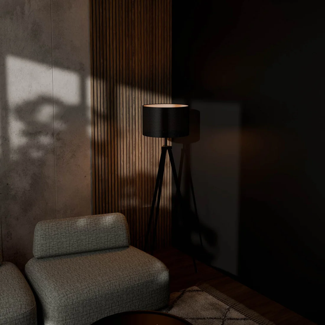 La lámpara de suelo CHERA está diseñada para aportar un aire sofisticado a cualquier espacio. Su estructura metálica estilizada en acabado negro mate le confiere un carácter elegante y atemporal, mientras que su pantalla de tela suaviza la luz, creando una atmósfera cálida y acogedora.