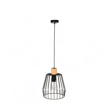 La lámpara de techo FAURA está formada por una pantalla de metal en color negro con una pletina de madera que le añade textura.