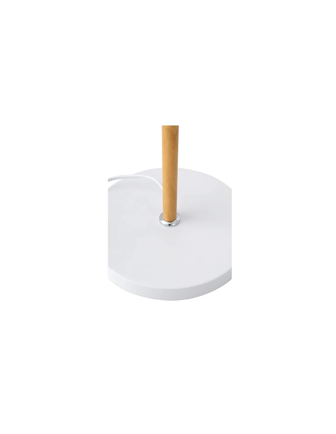 La lámpara de sobremesa ANTIA combina diseño funcional y estilo contemporáneo en una pieza compacta y versátil. Fabricada en metal blanco con un elegante detalle en madera natural, destaca por su estética sobria con un toque cálido y moderno.