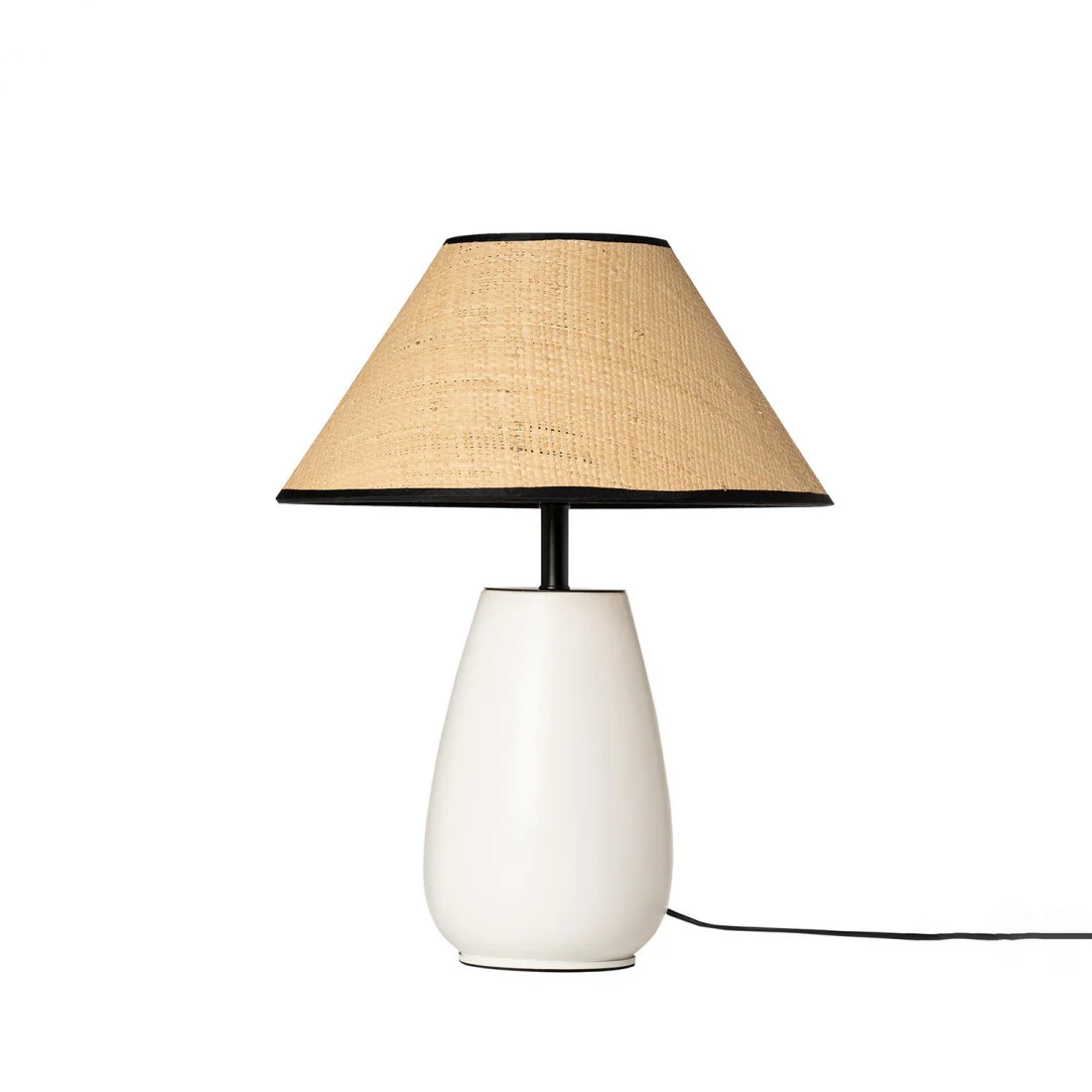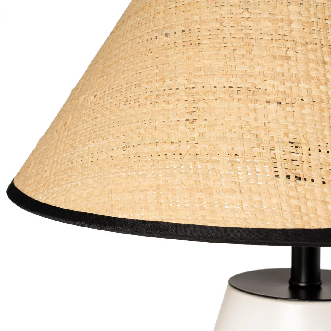 El acabado en color blanco mate le aporta un toque industrial y sofisticado, que, junto al detalle de madera en la parte superior, añade un contraste cálida y natural.