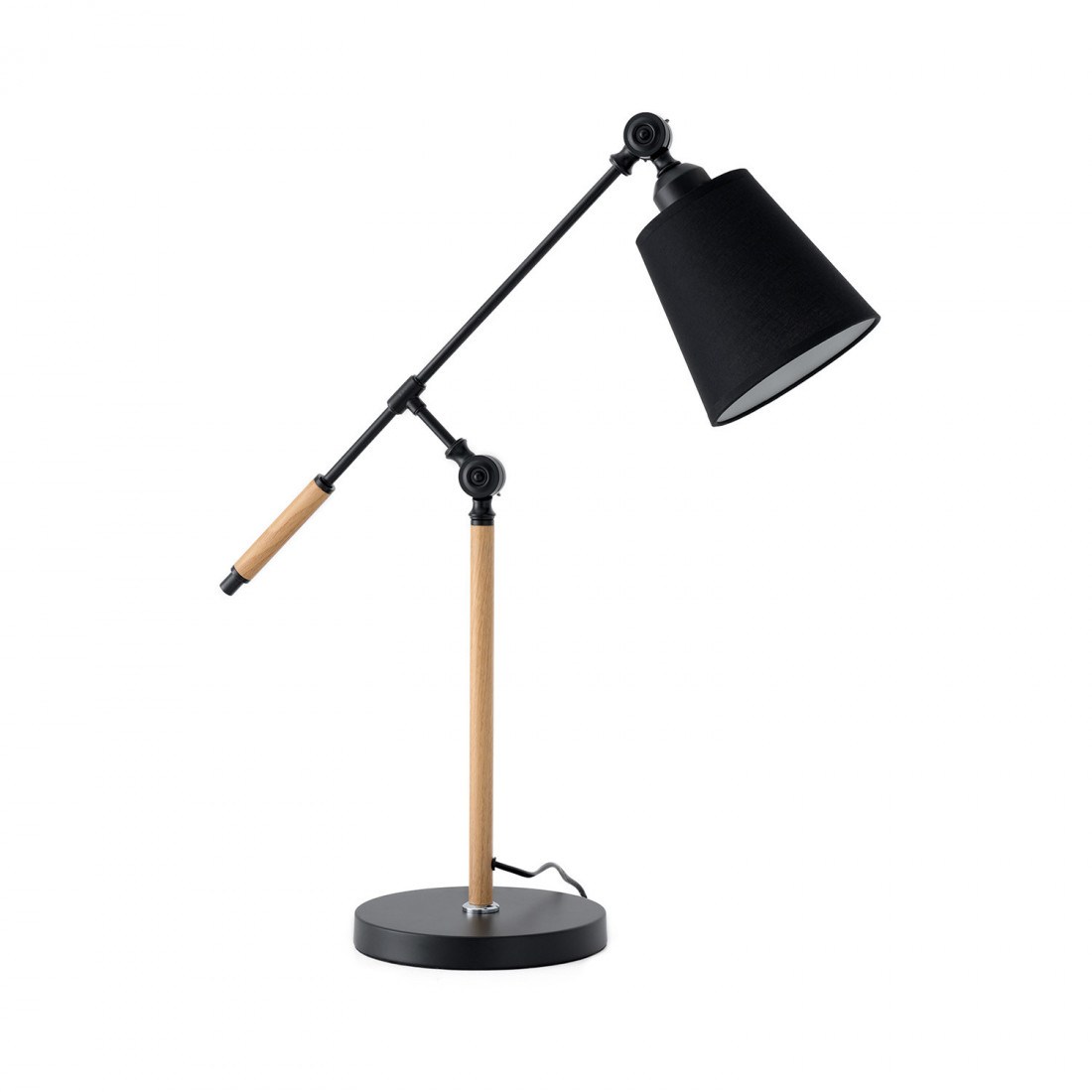 La lámpara de sobremesa LIZAR combina materiales y texturas en una pieza versátil y acogedora. Su estructura mezcla metal y madera, mientras que la pantalla de tela suaviza la luz, creando una iluminación cálida y envolvente.