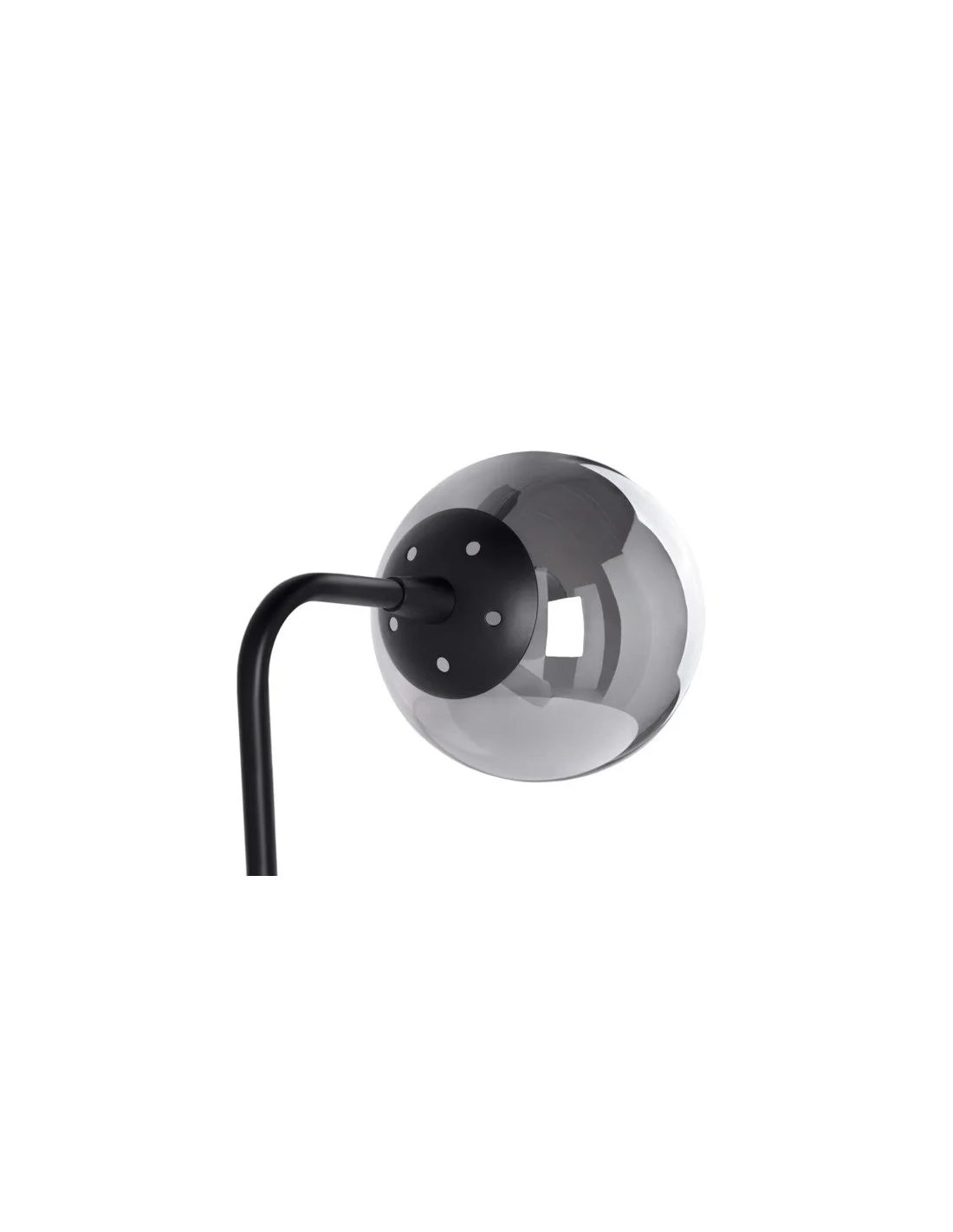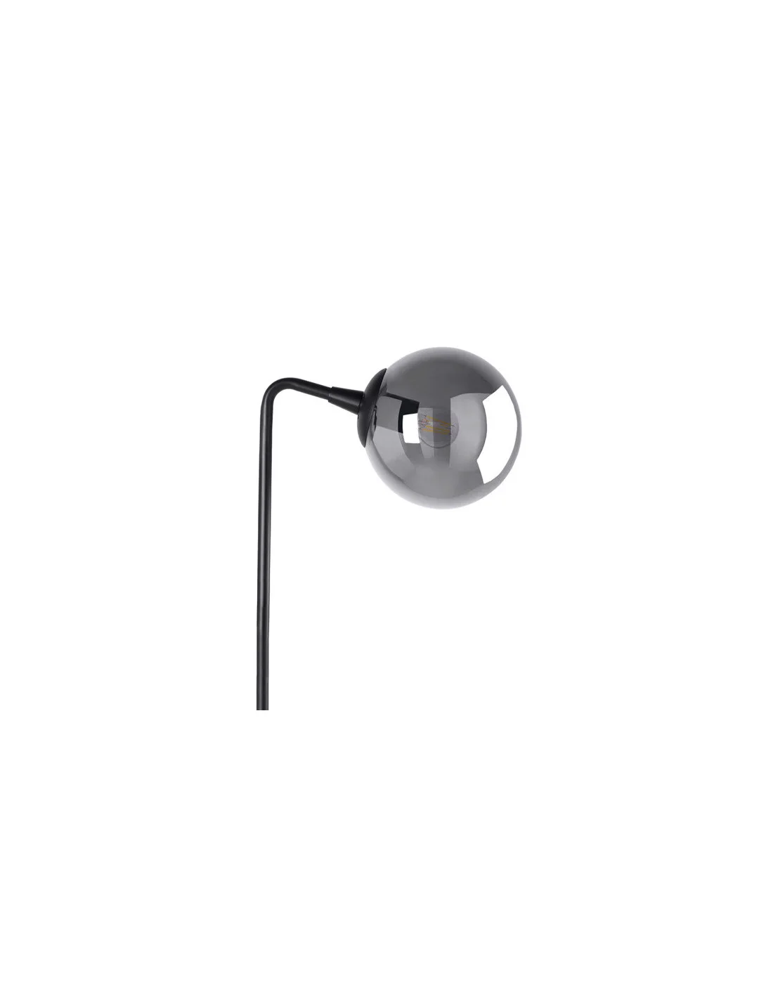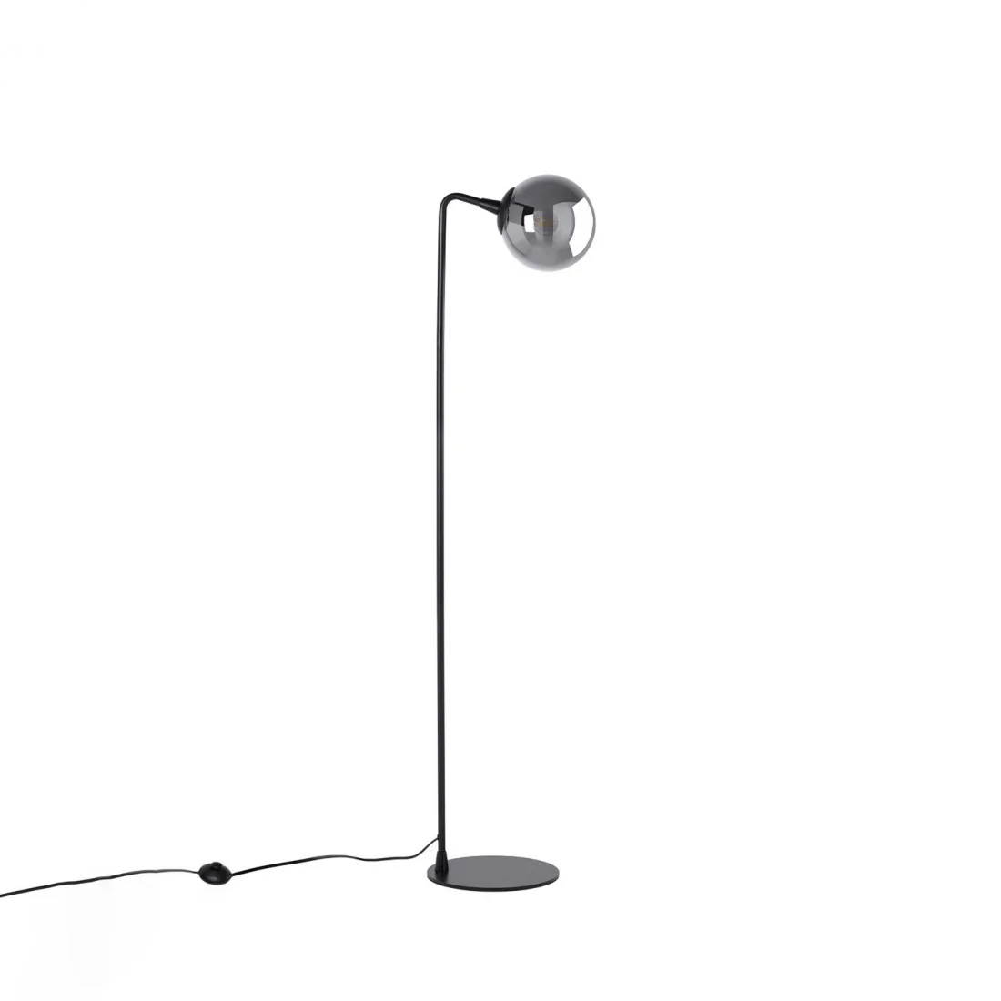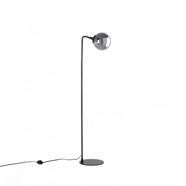La lámpara de suelo GANDESA destaca por su diseño sofisticado y minimalista, combinando una estructura de metal negro con una elegante pantalla de vidrio que difumina la luz con suavidad.