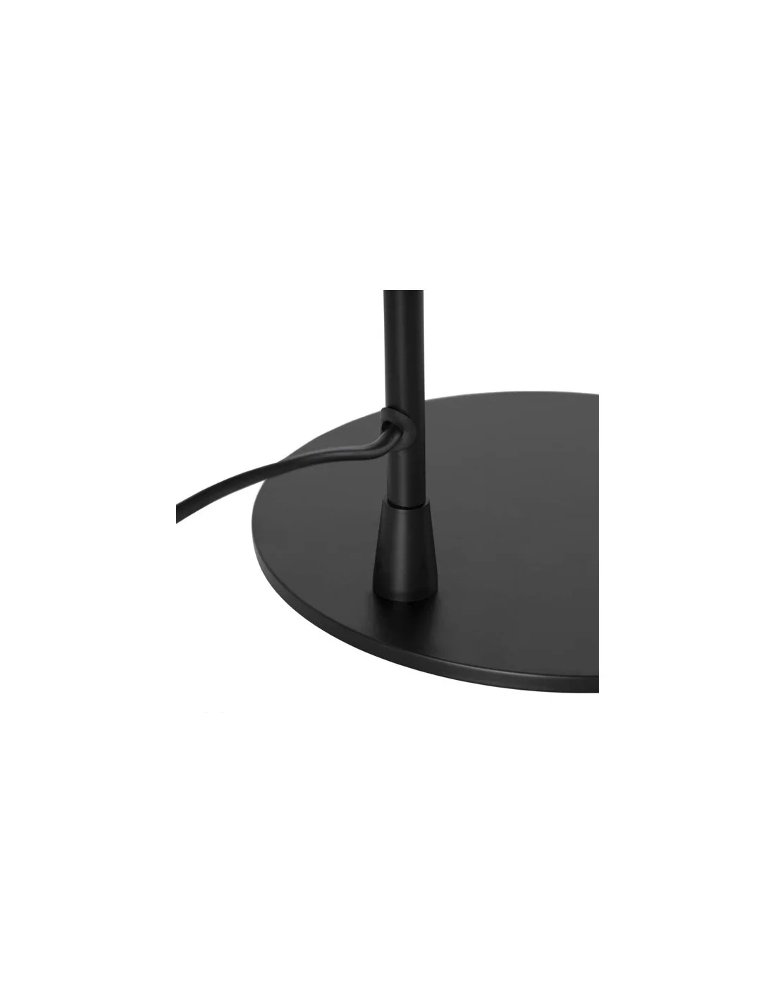 La lámpara de suelo BEJIS combina materiales nobles con un diseño minimalista y elegante. Su estructura metálica en negro se alza con líneas limpias y estilizadas, mientras que la base de mármol blanco moteado aporta estabilidad y un contraste visual sofisticado.