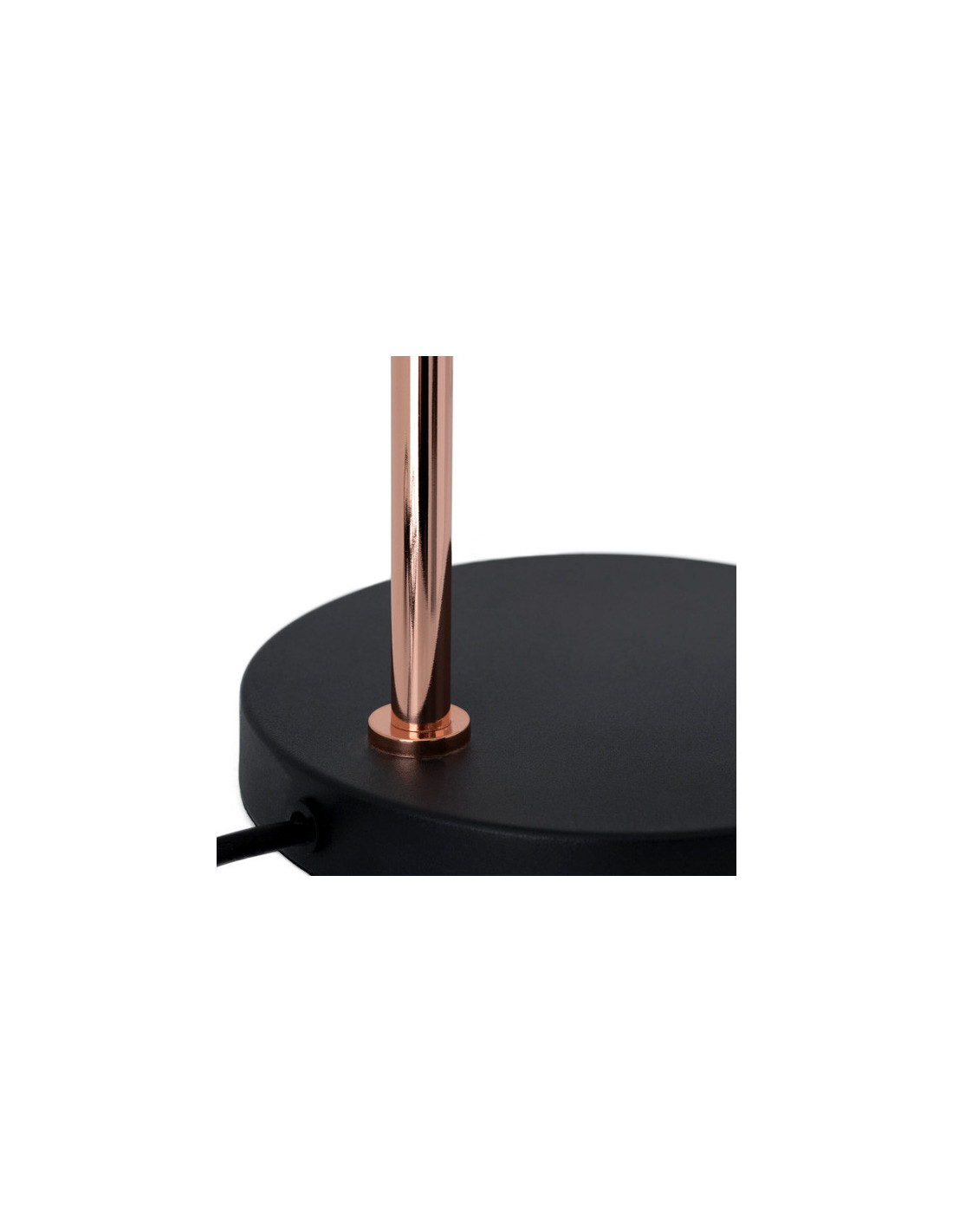 La lámpara de sobremesa ADAME destaca por su estilo contemporáneo con un sutil toque industrial. Fabricada en metal negro, incorpora elegantes detalles en cobre metálico que aportan contraste y sofisticación, convirtiéndola en una pieza decorativa con personalidad propia.