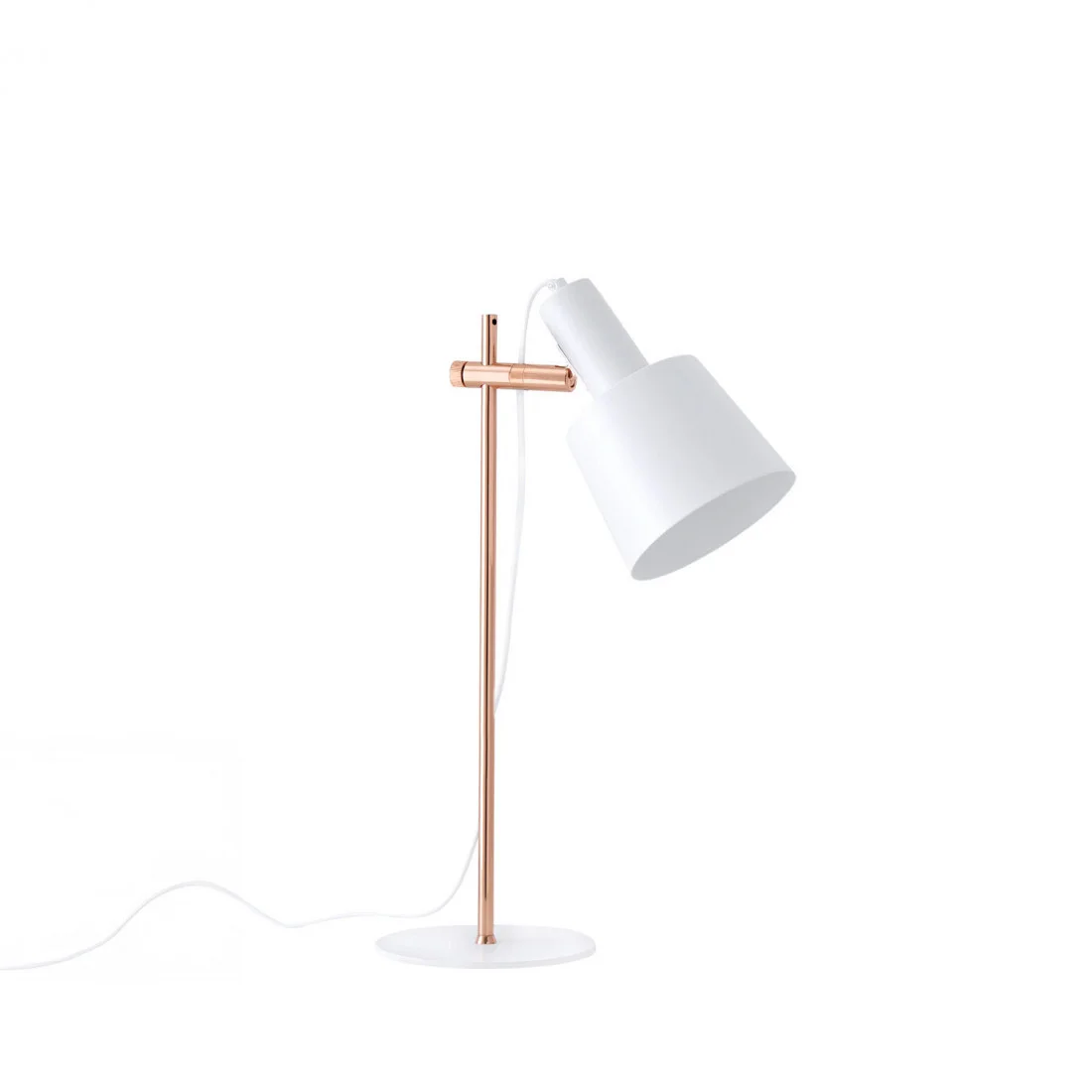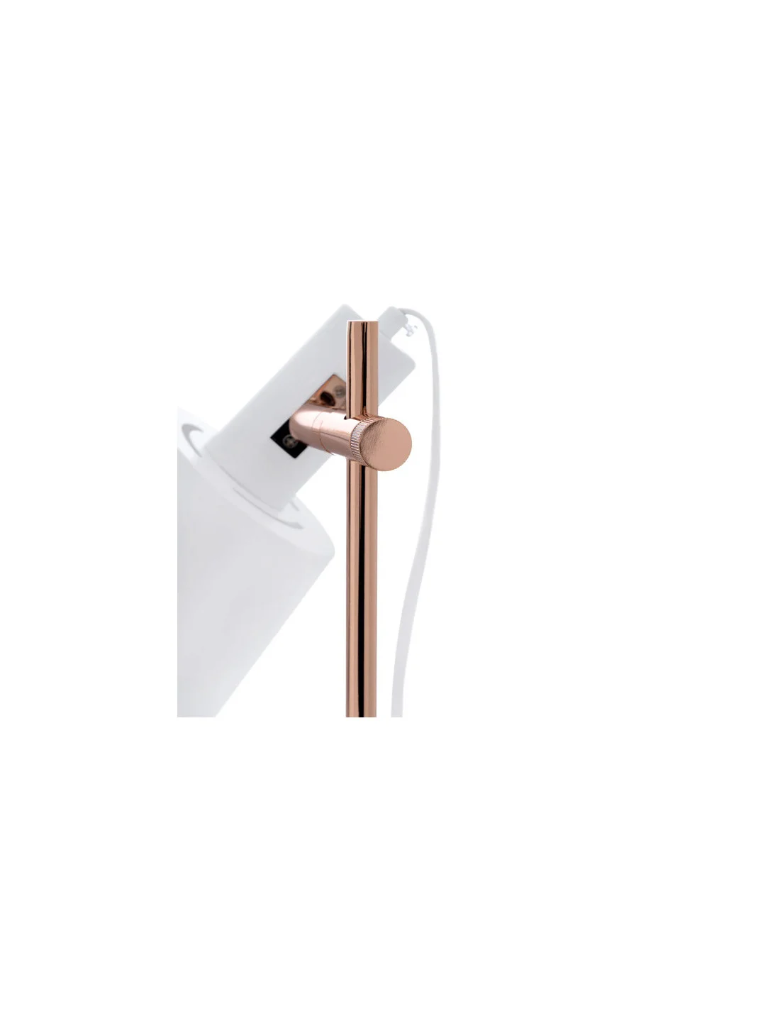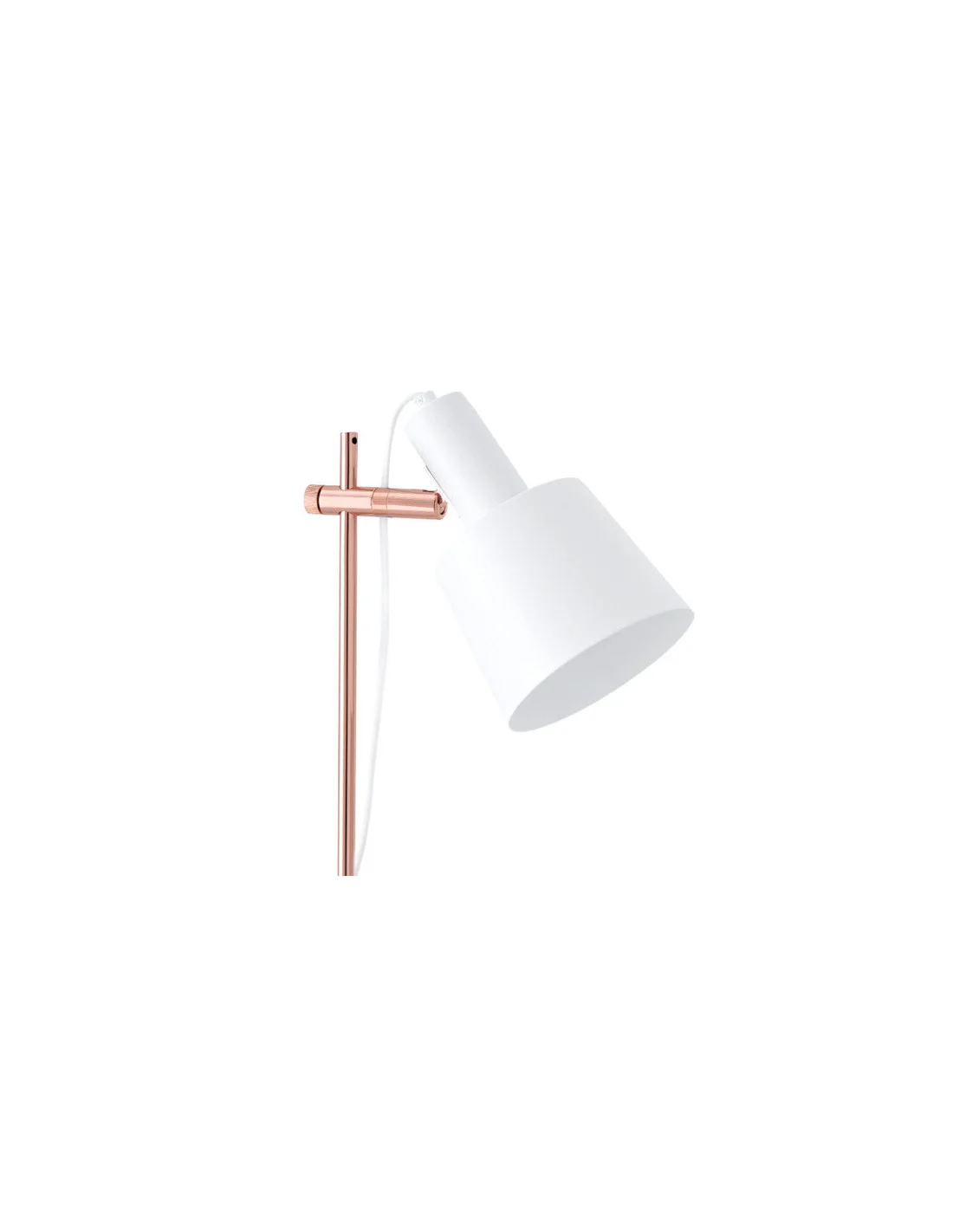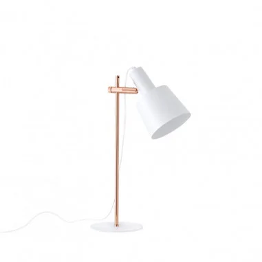 La lámpara de sobremesa ESTEL combina simplicidad y elegancia en una pieza de diseño atemporal. Fabricada en metal blanco, su silueta limpia se realza con detalles en acabado cobrizo, que aportan un sutil contraste cálido y sofisticado.