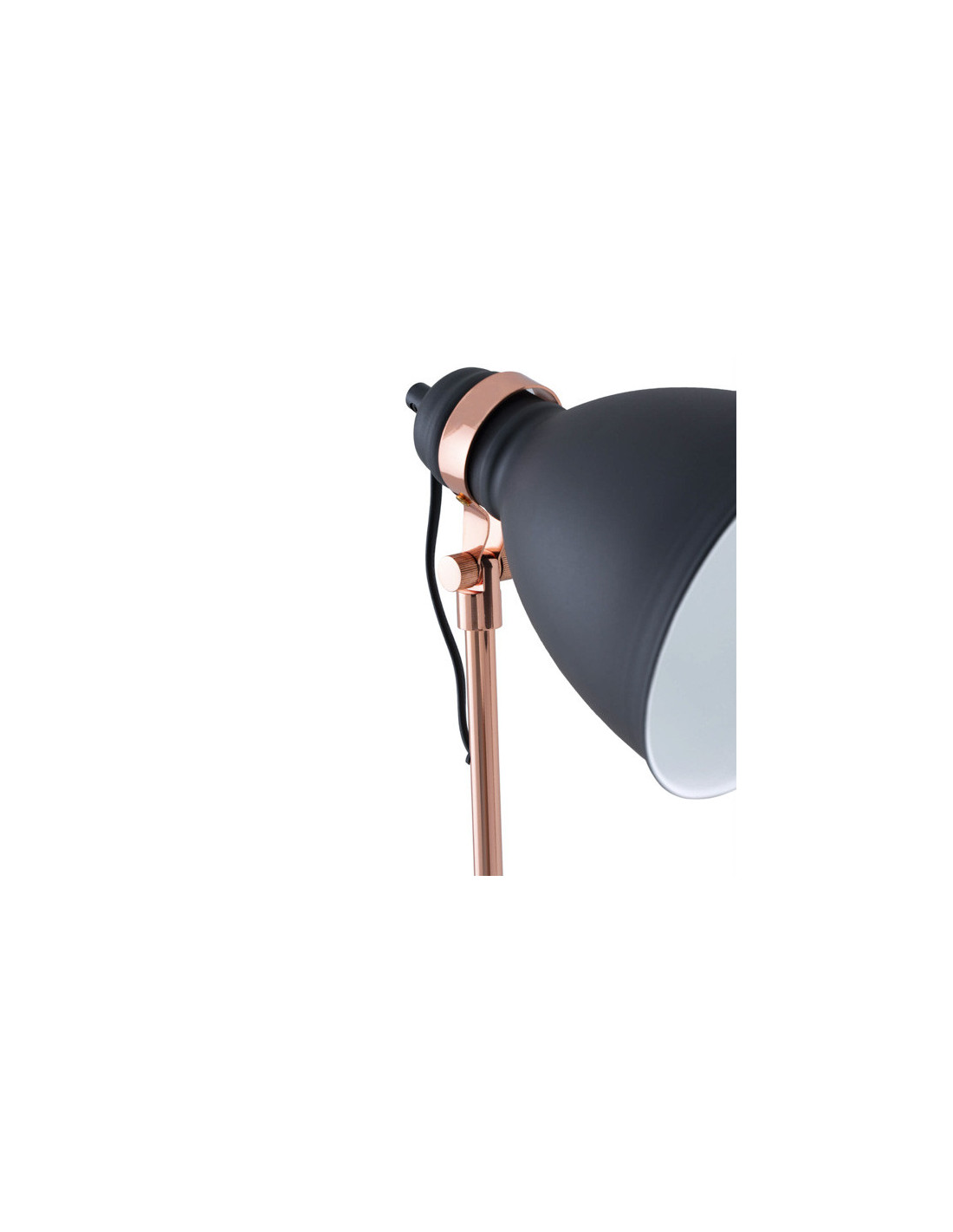 Los detalles en cobre metálico añaden un toque sofisticado que rompe con la sobriedad del negro, aportando calidez y estilo. Ideal para salones, estudios o rincones de lectura, BLASCA es una pieza versátil que aporta luz con carácter y diseño con personalidad.