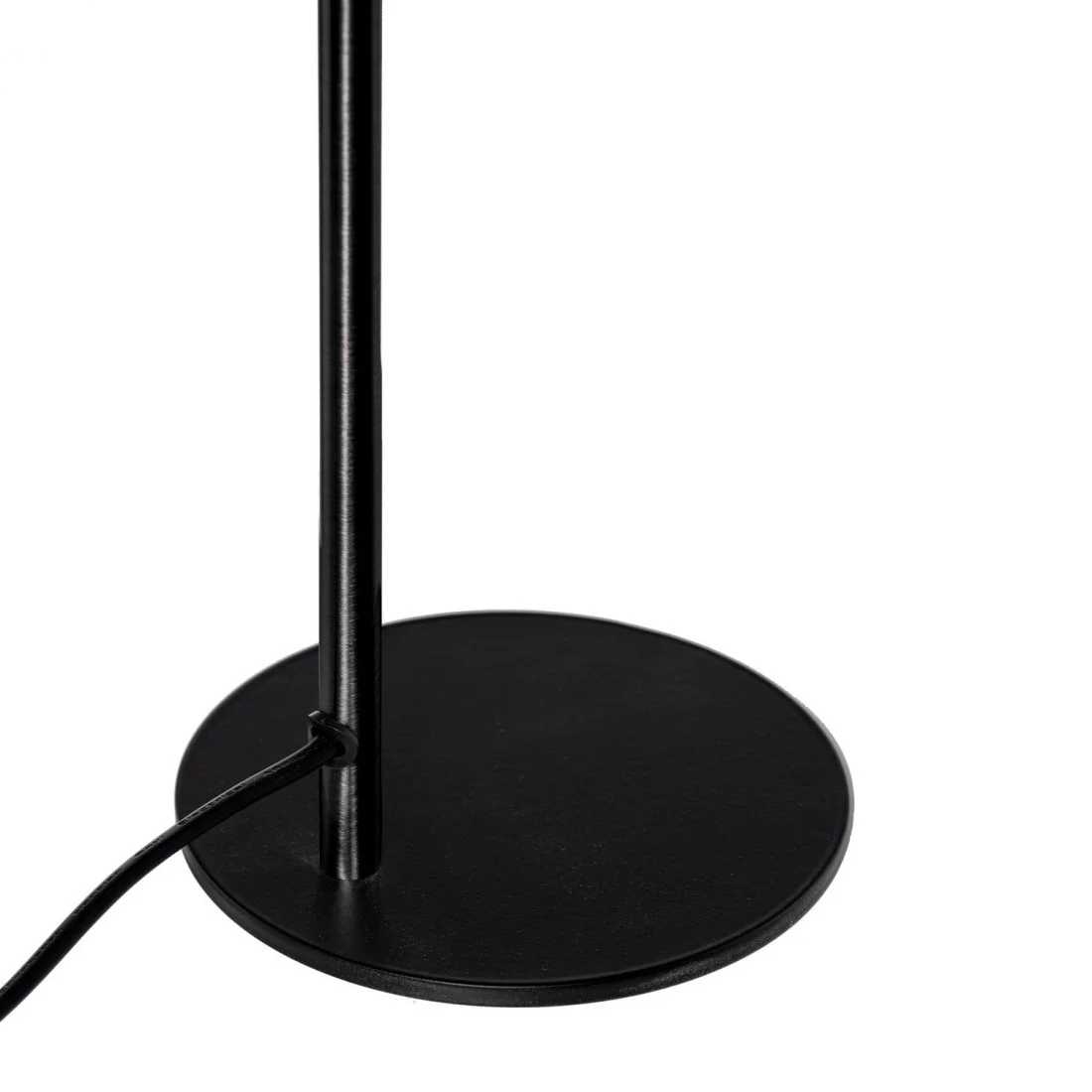 La lámpara de suelo BEJIS combina materiales nobles con un diseño minimalista y elegante. Su estructura metálica en negro se alza con líneas limpias y estilizadas, mientras que la base de mármol blanco moteado aporta estabilidad y un contraste visual sofisticado.