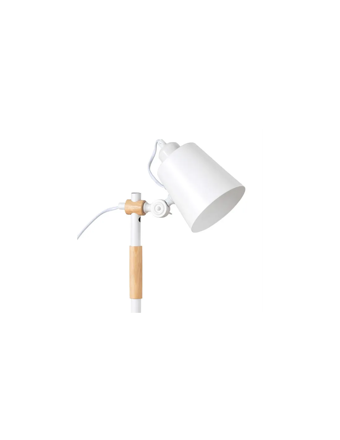 El diseño de la pantalla, también en blanco, dirige la luz de manera focalizada, ideal para áreas de trabajo o lectura. Gracias a su articulación ajustable, permite orientar la iluminación según las necesidades específicas, ofreciendo versatilidad en su uso.