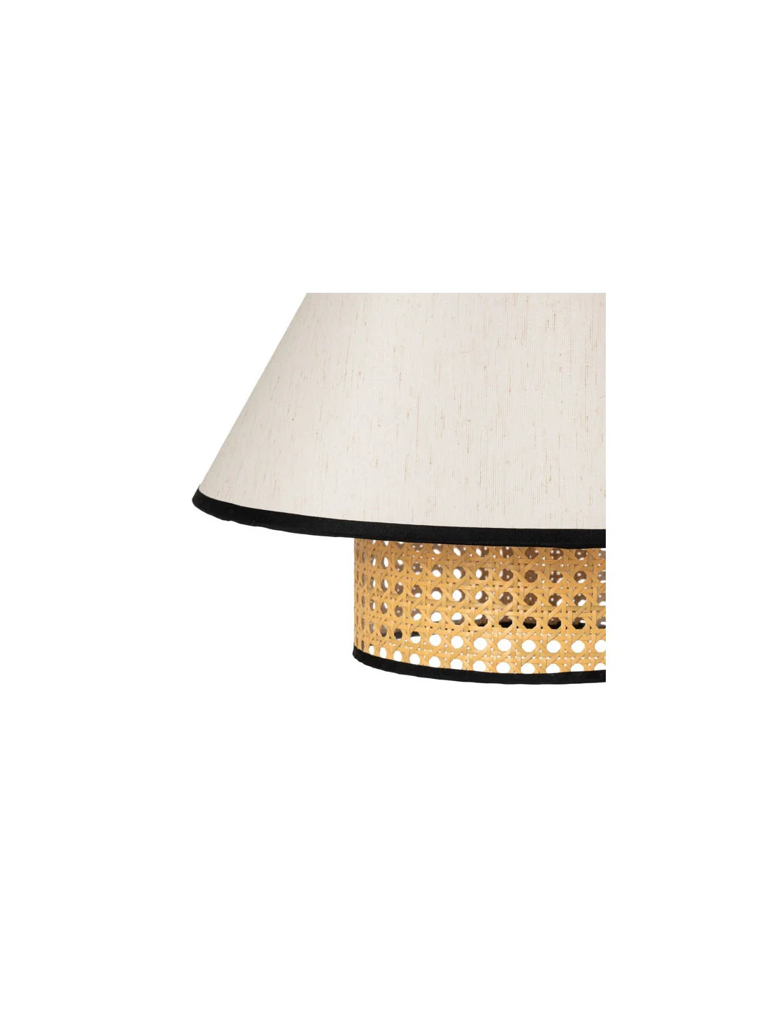 La lámpara de techo NERJA fusiona materiales naturales y diseño contemporáneo en una pieza llena de encanto. Su pantalla combina tela y ratán, permitiendo una iluminación cálida y suave que transforma cualquier espacio en un ambiente acogedor.