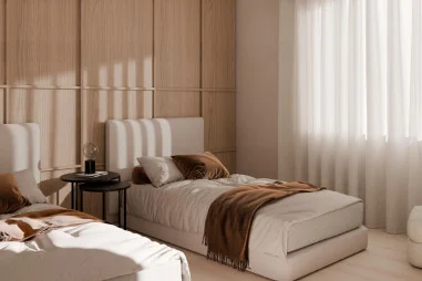 La lámpara de techo ORCE destaca por su estética orgánica y acogedora, gracias a su pantalla elaborada en fibra natural trenzada, combinada con tela clara que suaviza la luz y aporta calidez al ambiente.