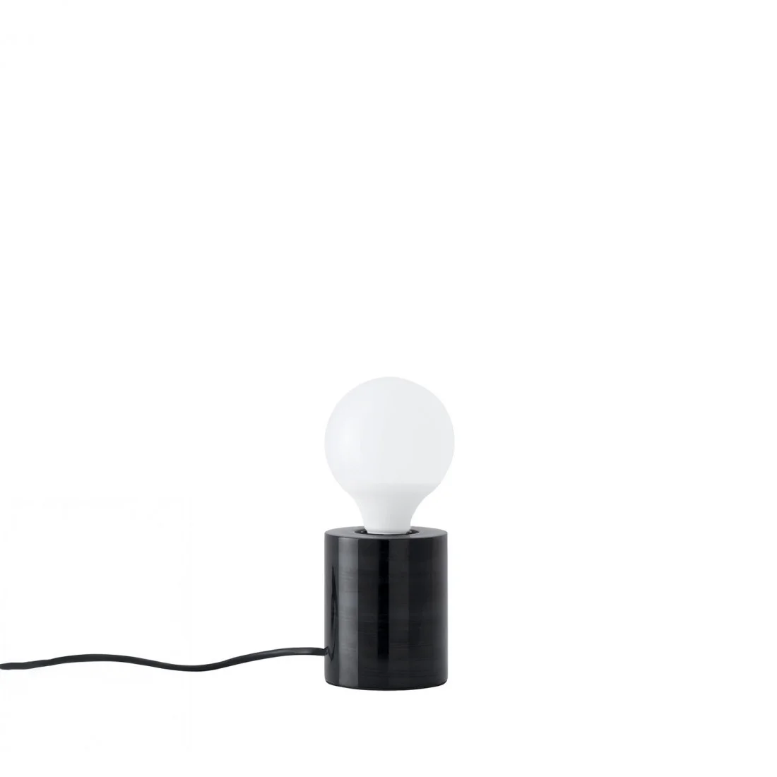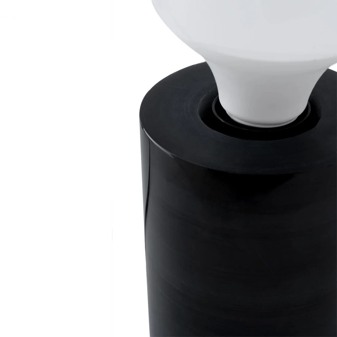 La lámpara de sobremesa ROSER es ideal para aportar un toque moderno y sofisticado a cualquier espacio. Su base cilíndrica, elaborada en mármol negro, no solo garantiza estabilidad, sino que también añade un aire de distinción gracias a las vetas naturales propias de este material.